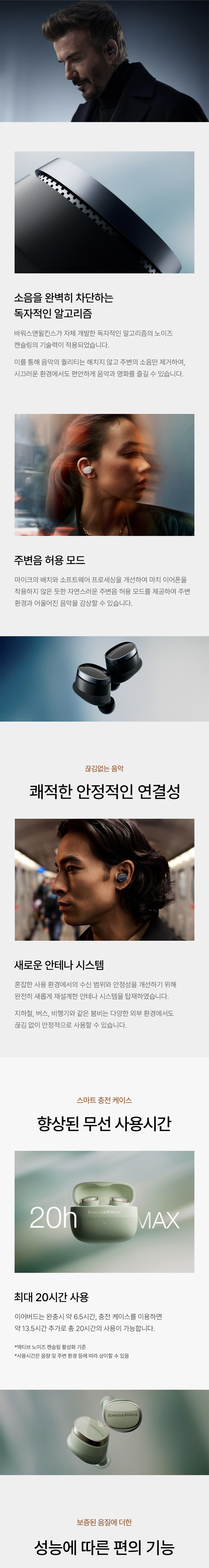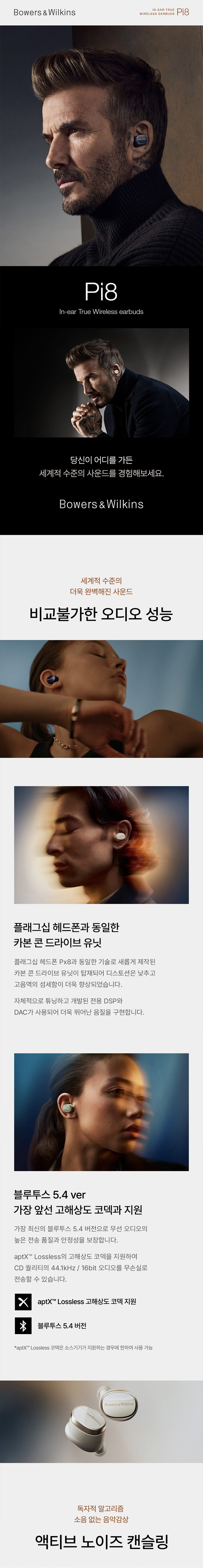 바워스앤윌킨스 Pi8 미드나잇 블루 노이즈 캔슬링 블루투스 이어폰 (국내 정식 발매 제품)