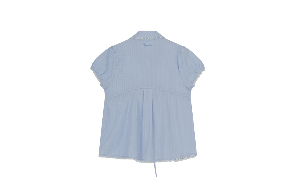 카시코 퍼프 슬리브 레이스 셔츠 블루