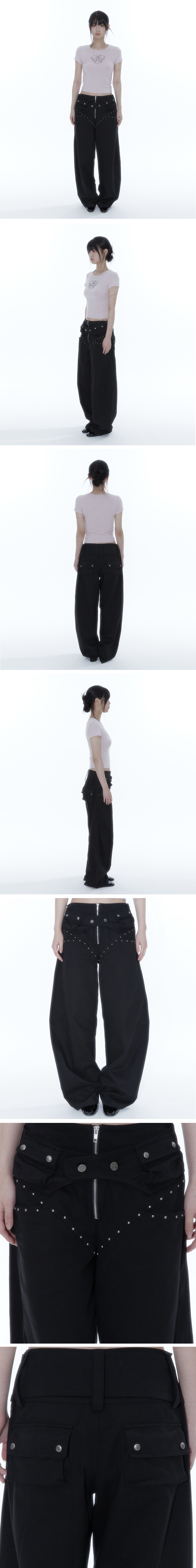 카시코 벨트 리벳 오벌 팬츠 블랙
