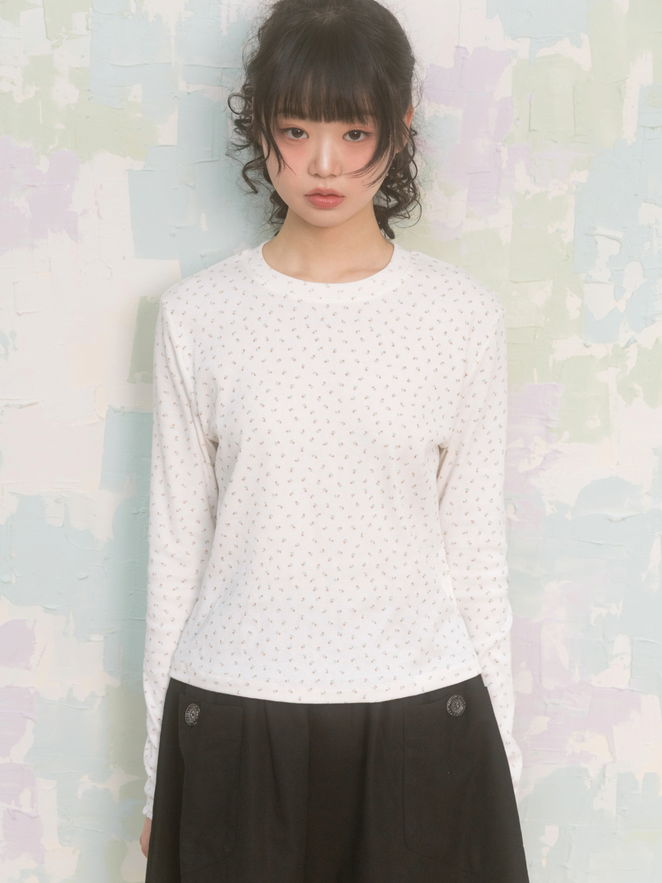 Flower Lace Long Sleeve 플라워 레이스 롱슬리브 러블리한 스타일의 플라워 패턴 롱슬리브 베스트, 가디건 등과 레이어드 연출가능 부드러운 소재로 편하게 착용가능 Color: Ivory Size: Free (One Size)