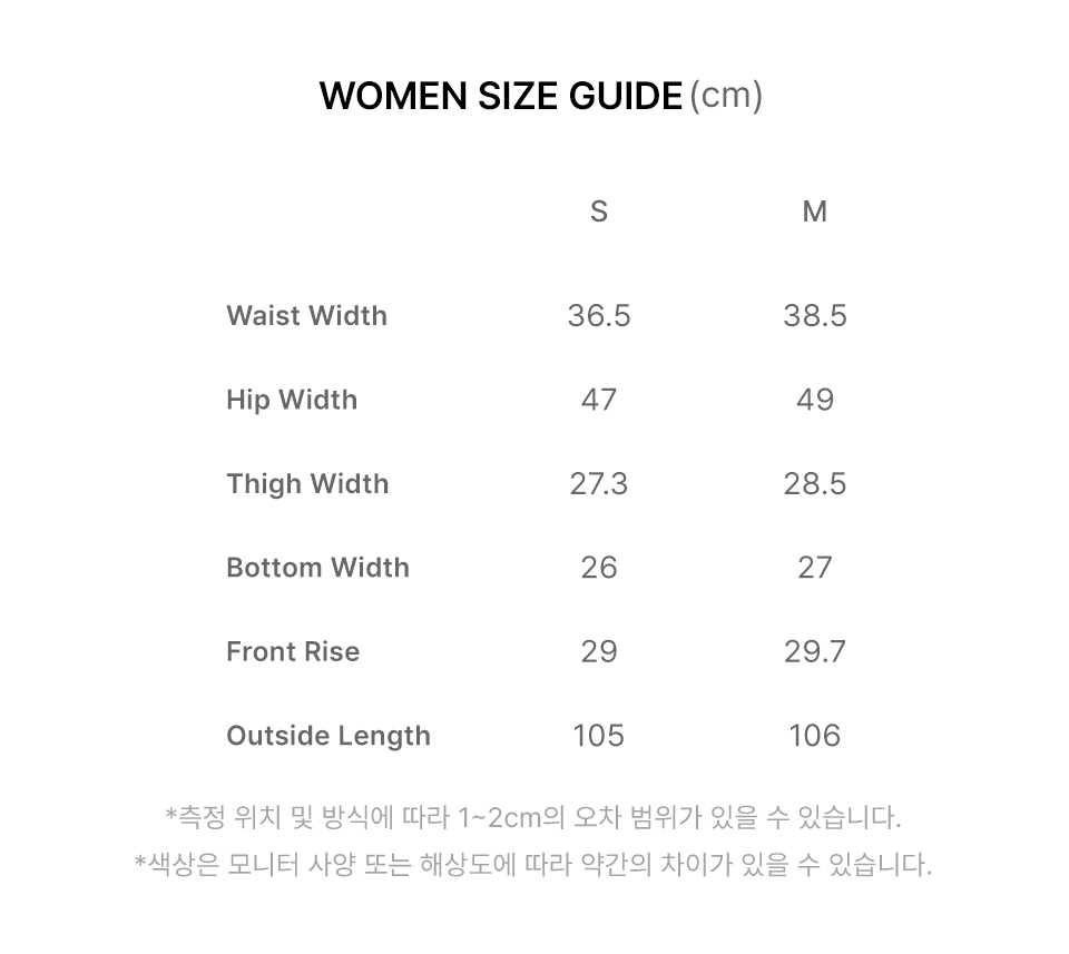 | 허리단면 | 힙단면 | 밑위 | 허벅지단면 | 밑단단면 | 총기장 |