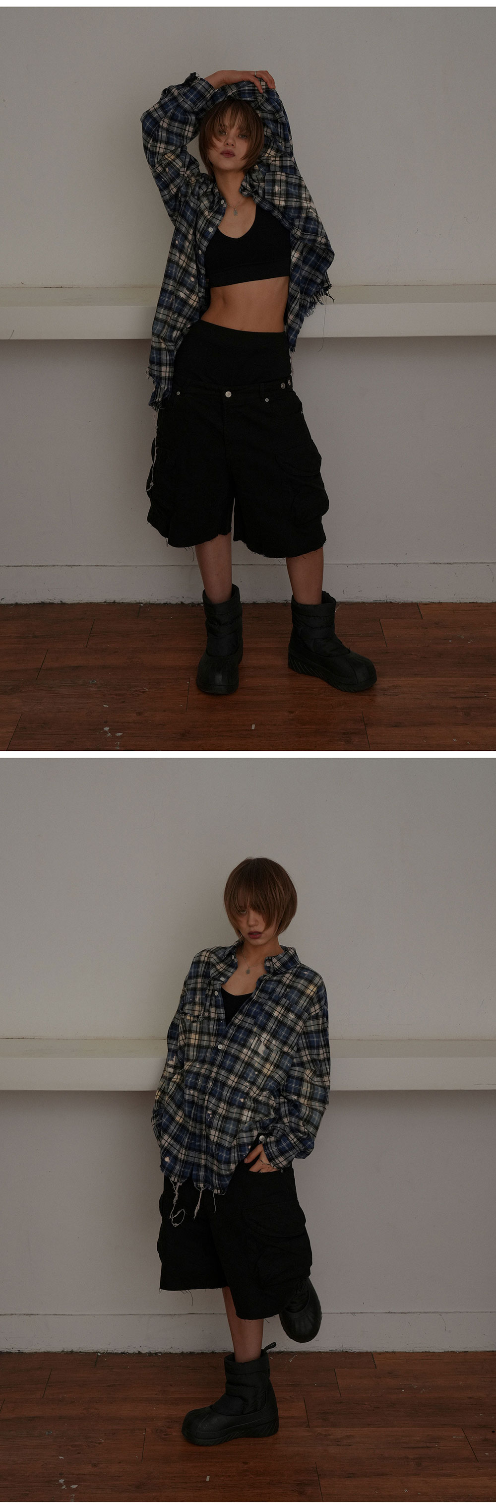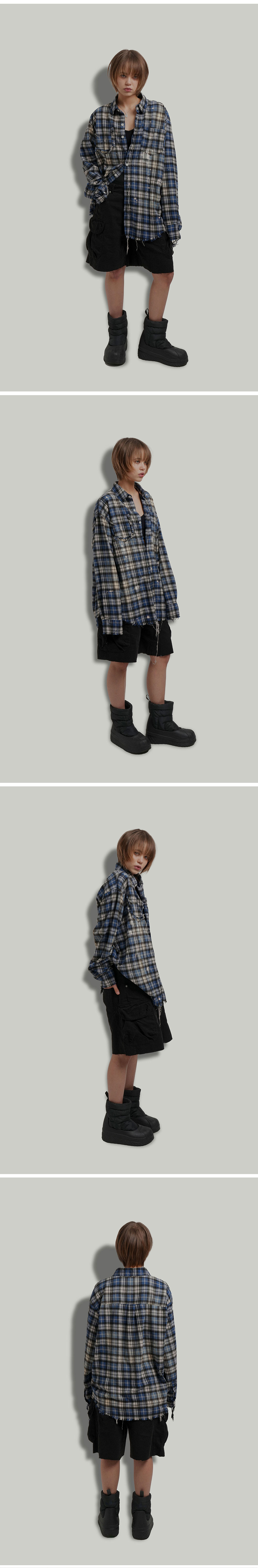 그레일즈 블리치드 플레이드 셔츠 블루