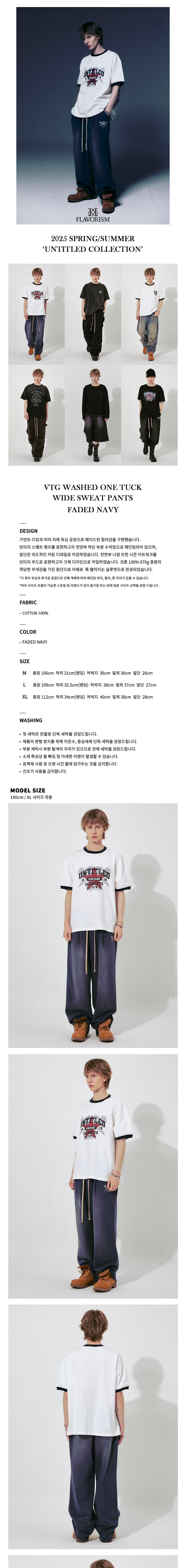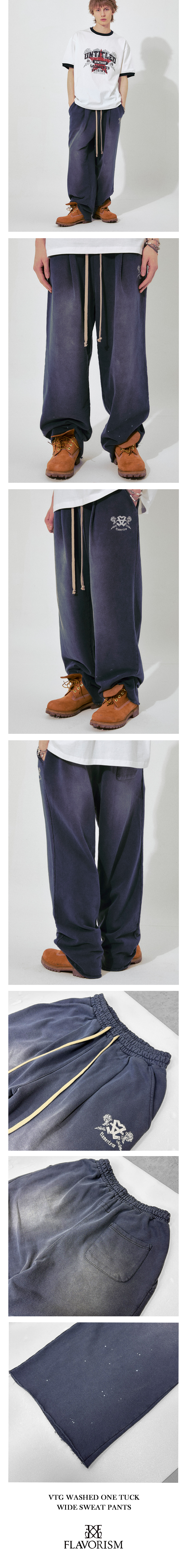 플레이버리즘 빈티지 워시드 원 턱 와이드 스웨트 팬츠 페이디드 네이비