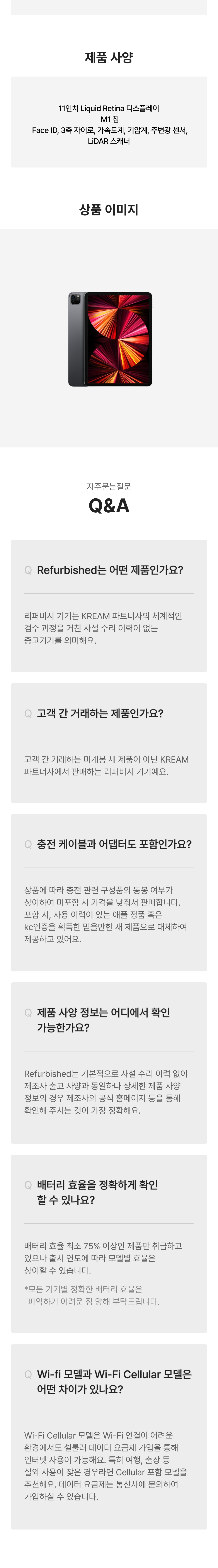 [S등급] 리퍼비시 아이패드 프로 11 3세대 wifi M1 128GB 스페이스그레이