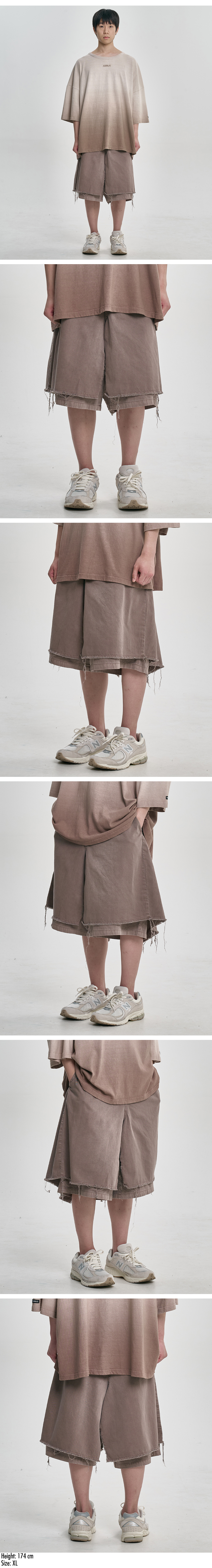 AJOBYAJO Washed Layered Skirt Shorts BROWN