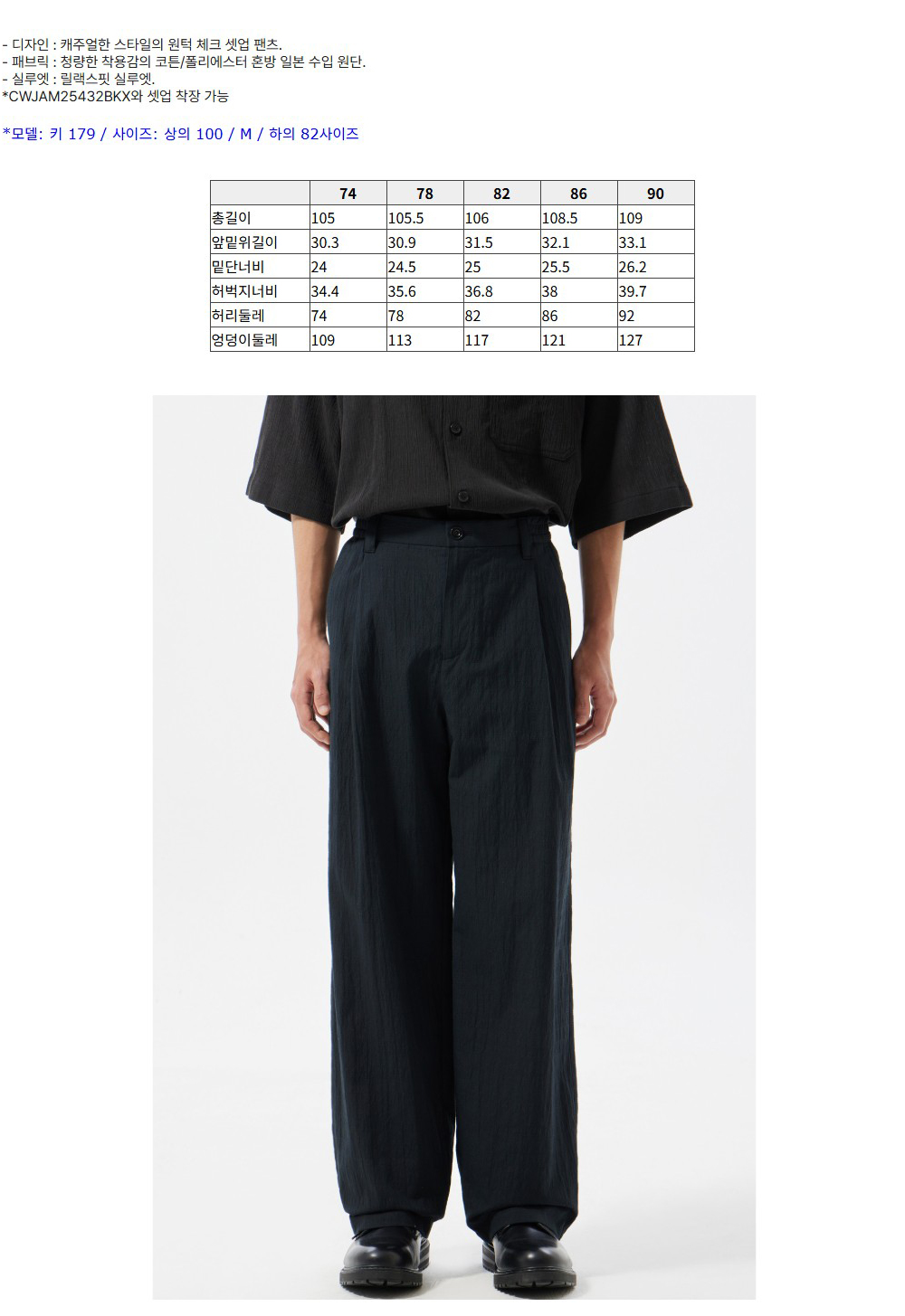 커스텀멜로우 릴렉스 핏 체크 셋업 팬츠 블랙