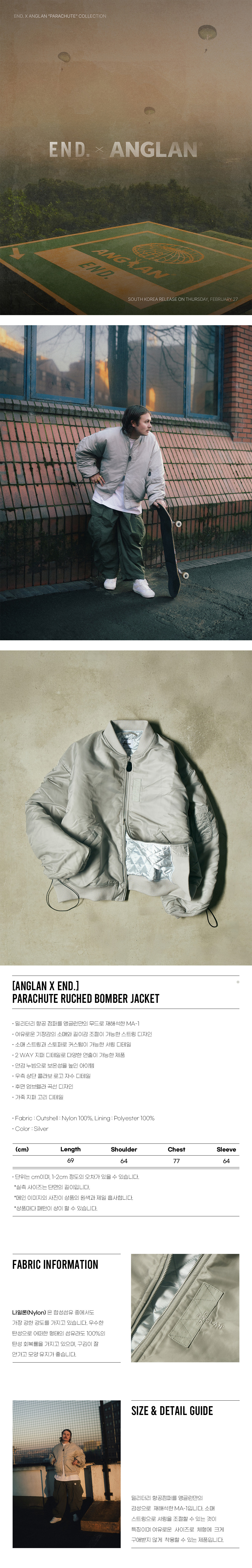 앵글런 x 엔드 패러슈트 러치드 봄버 자켓 실버