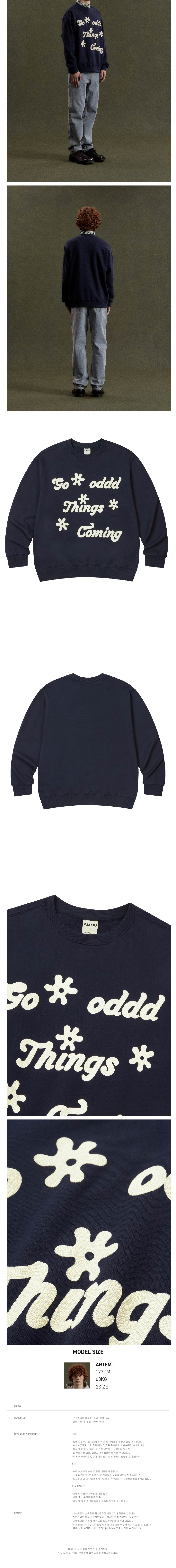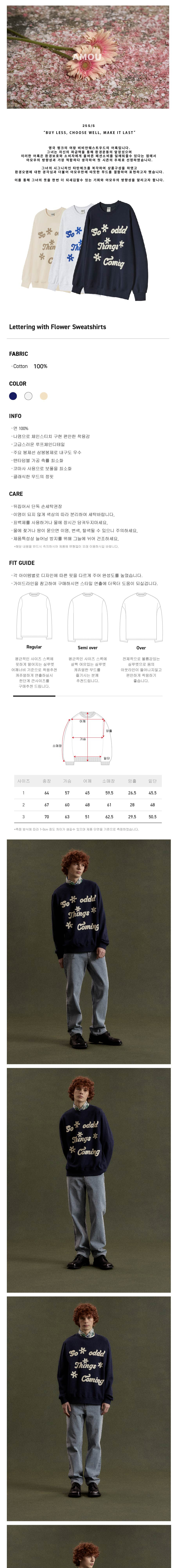 아모우 레터링 위드 플라워 스웨트셔츠 네이비