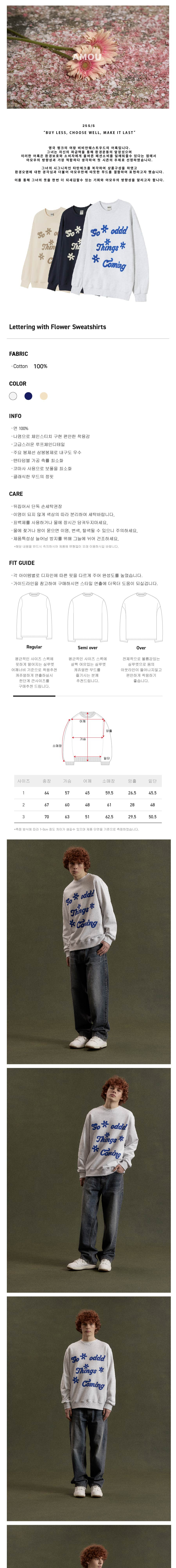 아모우 레터링 위드 플라워 스웨트셔츠 백메란지