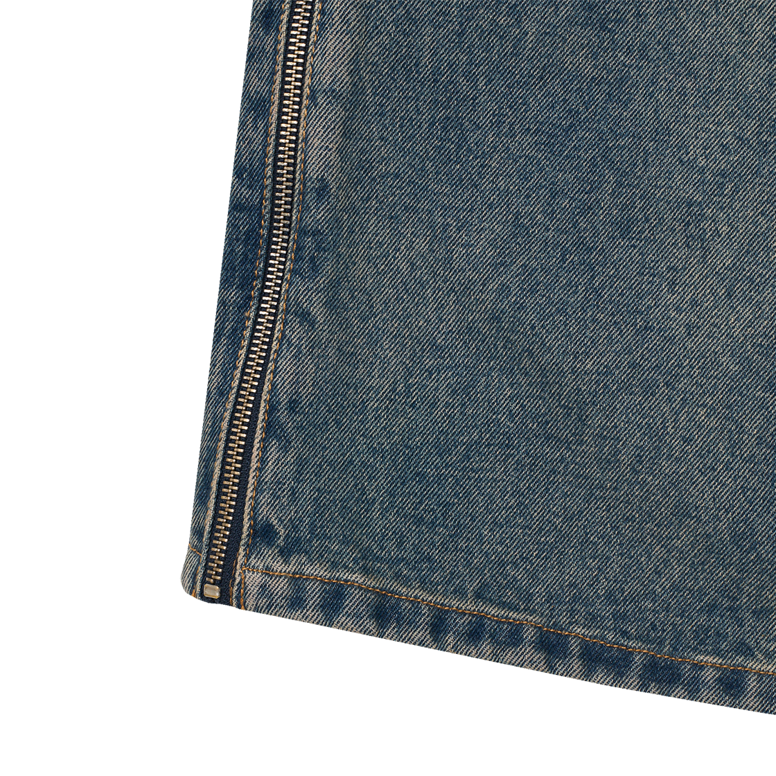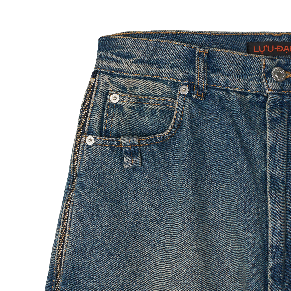 양 사이드의 지퍼 디테일이 인상적인 LU'UDAN의 Side Zip Jeans Vintage Blue입니다. -5포켓 디자인 -앞주머니 쪽 고리 디테일 -양 사이드의 2-way 지퍼로 다양한 핏으로 연출 가능 -허리의 로고 패치 * 모델 컷은 참고를 위한 이미지이며 같은 제품의 다른 컬러 제품입니다.