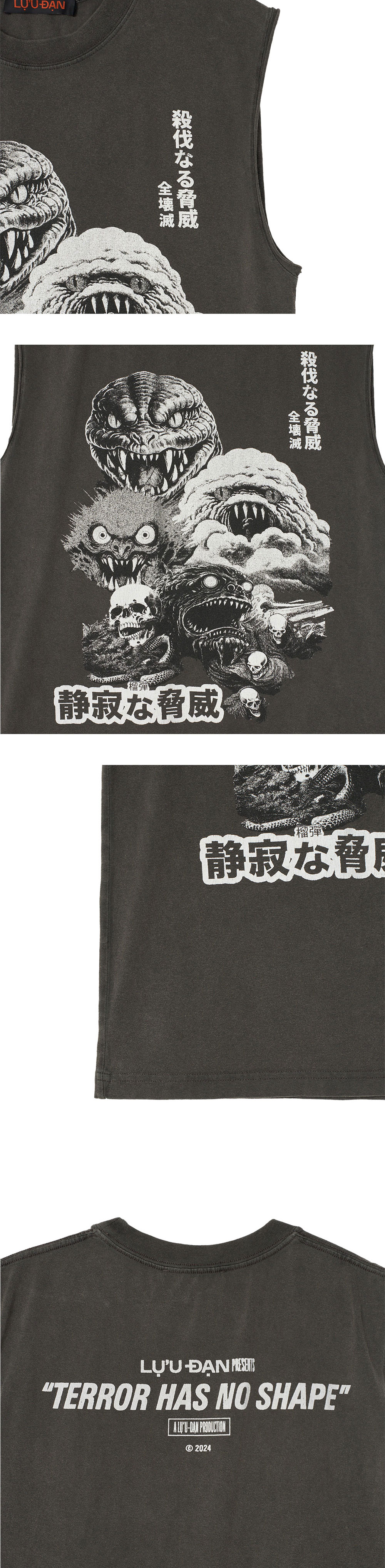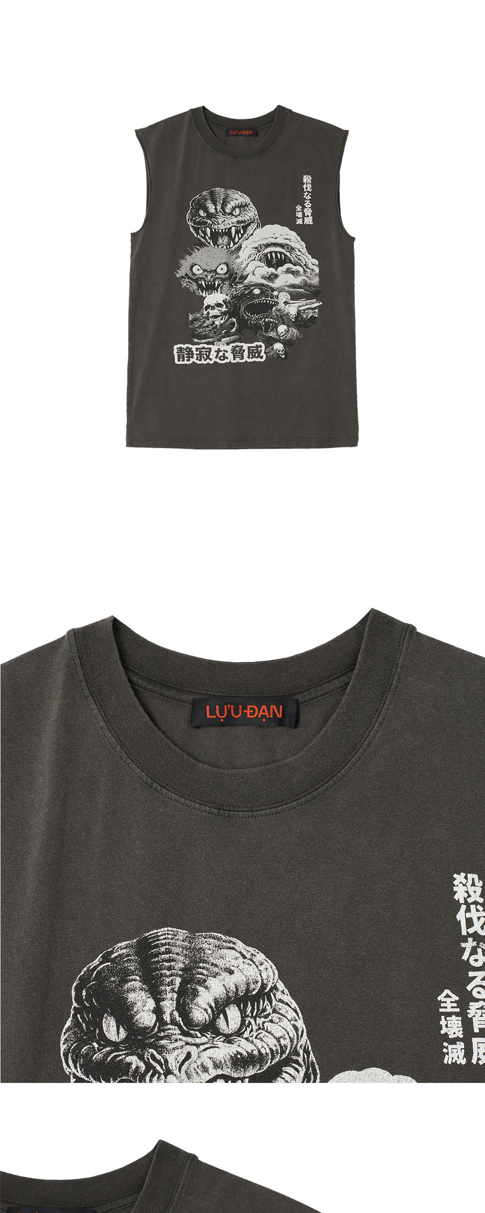LU'UDAN Sleeveless Tee Washed Black Demon Threat - 25SS