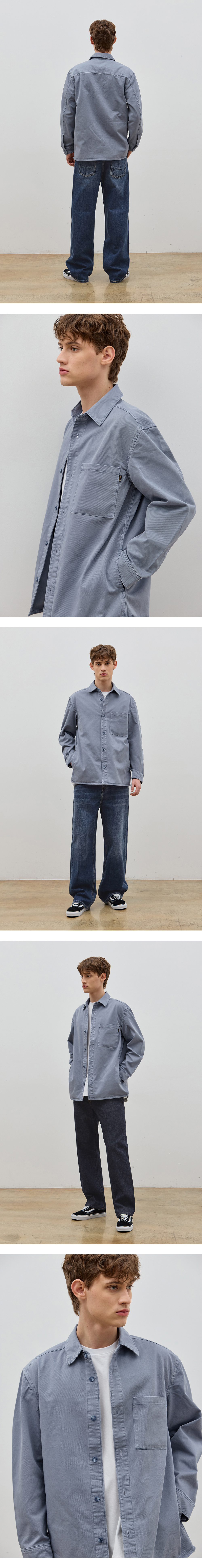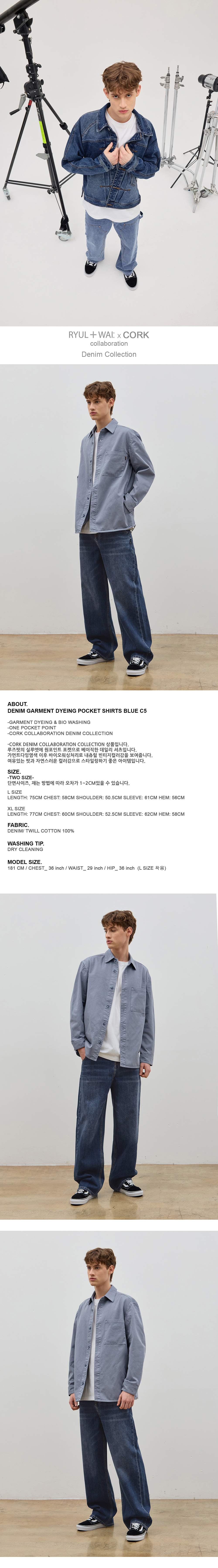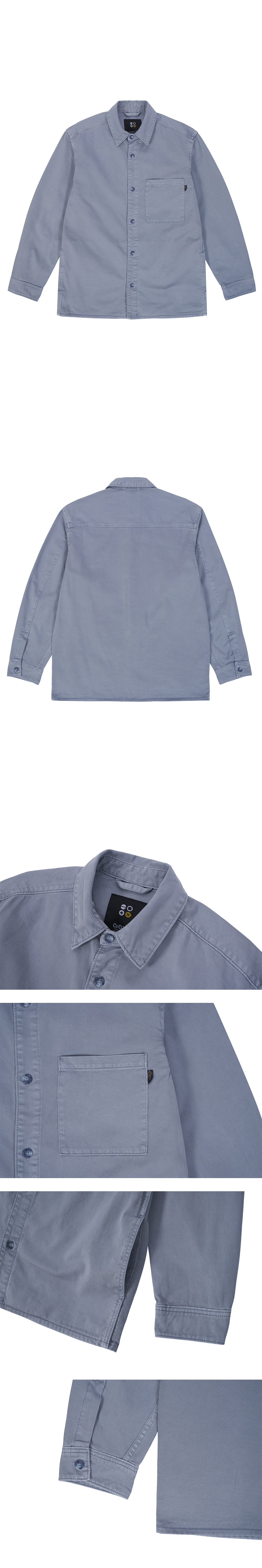 -CORK DENIM COLLABORATION COLLECTION 상품입니다. 루즈핏의 실루엣에 원포인트 포켓으로 베이직한 데일리 셔츠입니다. 가먼트다잉염색 이후 바이오워싱처리로 내츄럴 빈티지컬러감을 보여줍니다. 여유있는 핏과 자연스러운 컬러감으로 스타일링하기 좋은 아이템입니다.