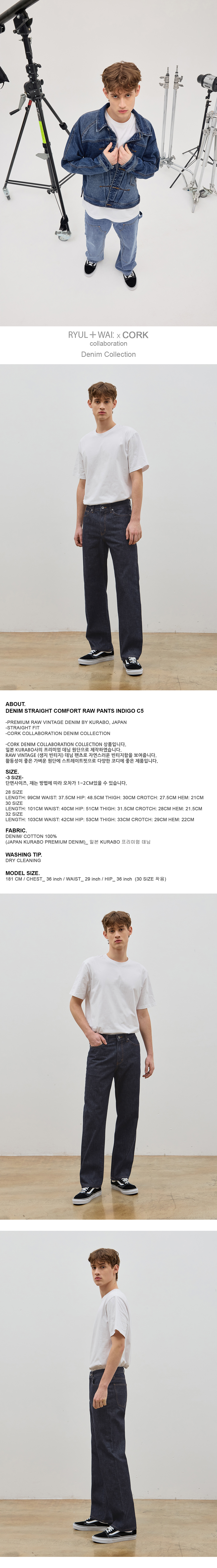-CORK DENIM COLLABORATION COLLECTION 상품입니다. 일본 KURABO사의 프리미엄 데님 원단으로 제작하였습니다. RAW VINTAGE (생지 빈티지) 데님 팬츠로 자연스러운 빈티지함을 보여줍니다. 활동성이 좋은 가벼운 원단에 스트레이트핏으로 다양한 코디에 좋은 제품입니다.
