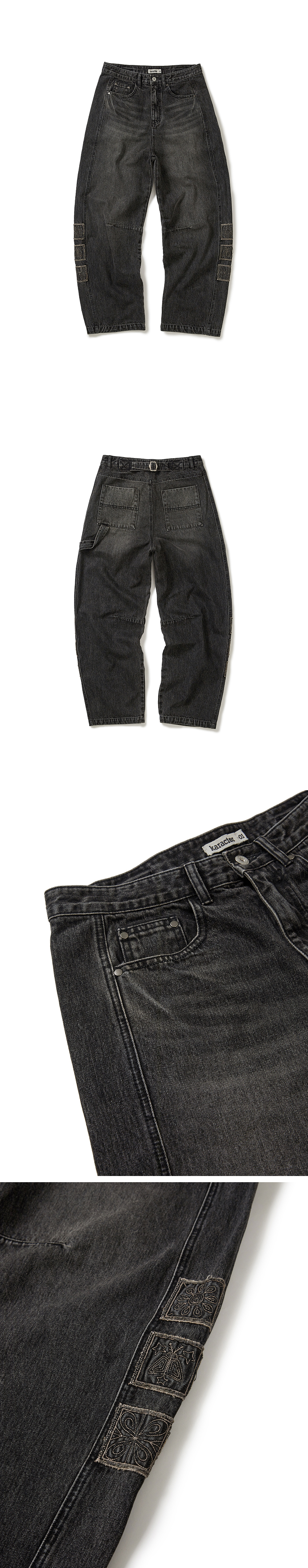 카락터 빈티지 엠블럼 데님 팬츠 블랙