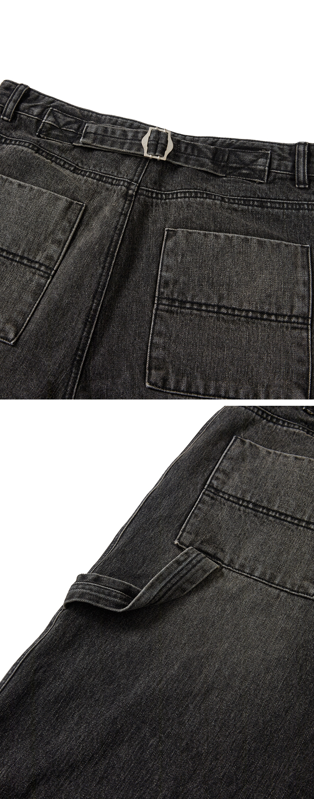 Product Info. - 13.5oz 탄탄한 두께감과 겉면 러프한 슬라브 텍스처의 고품질 데님 원단 - 패턴 변형으로 유니크하게 떨어지는 와이드 한 실루엣의 테이퍼드 핏 - 빈티지 데님의 컬러감과 텍스처를 구현하기 위한 정교한 복합 워싱 가공 및 염/탈색 가공 - 안쪽 레그 라인 다트 디테일 - 양 사이드 패널 디테일 - 후면 포켓 볼드 한 해머 루프 디테일 - 허리 사이즈 조절 가능한 후면 어드저스터 디테일 - 양 사이드 엠블럼 패치 자수 포인트