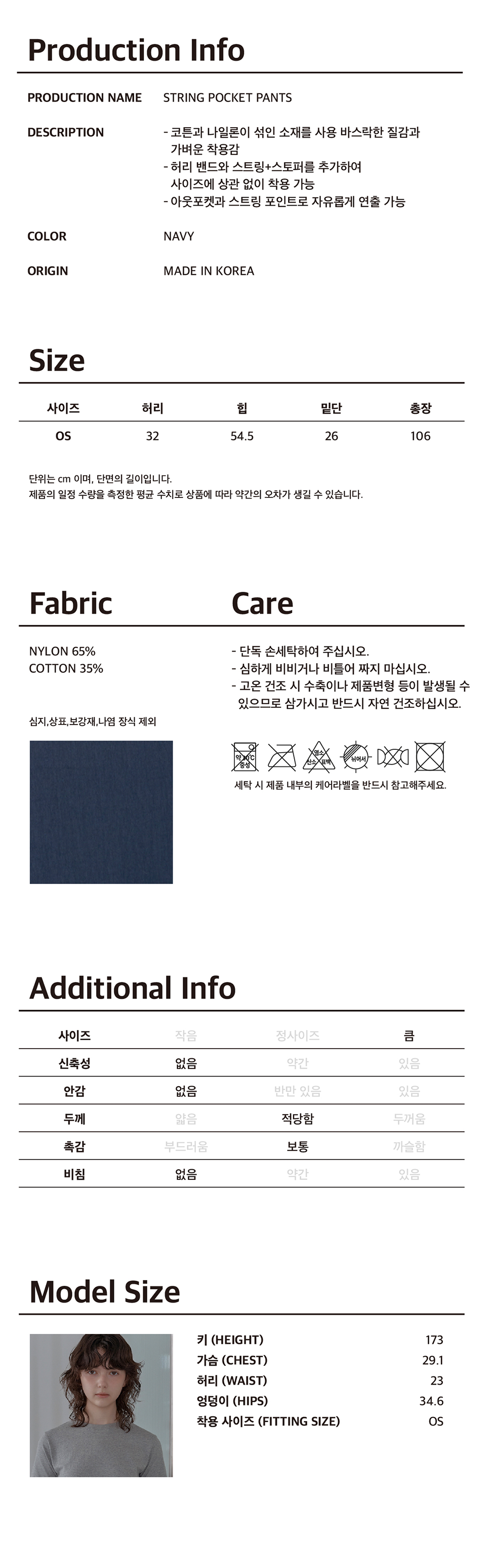 에프에이디 스트링 포켓 팬츠 네이비