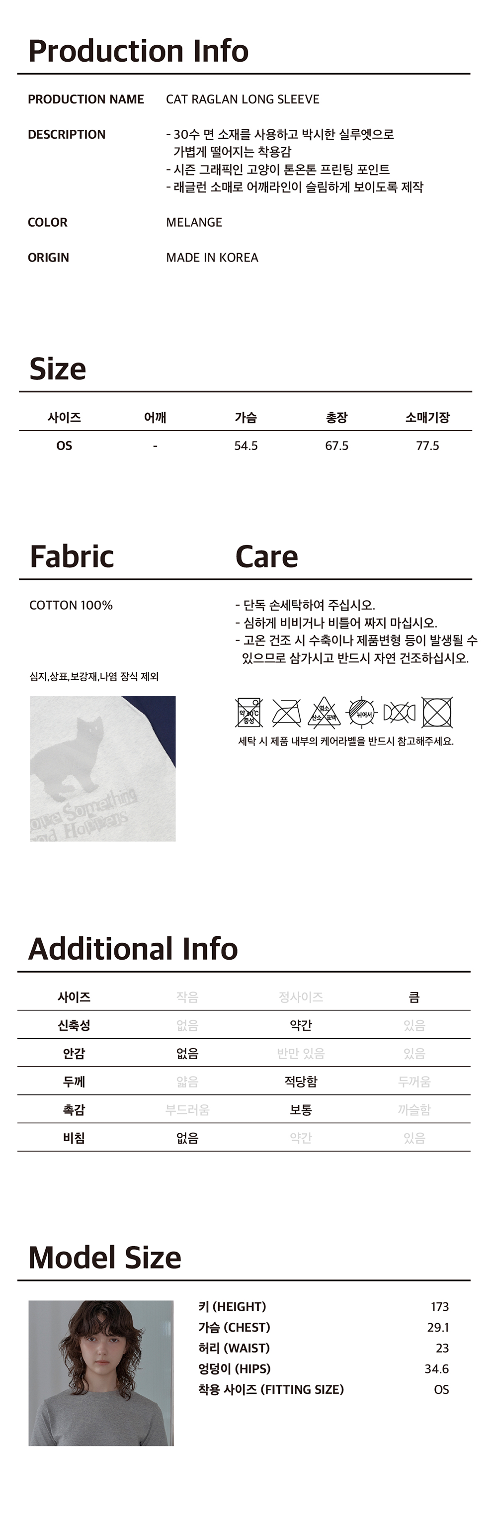 에프에이디 고양이 래글런 긴팔 멜란지