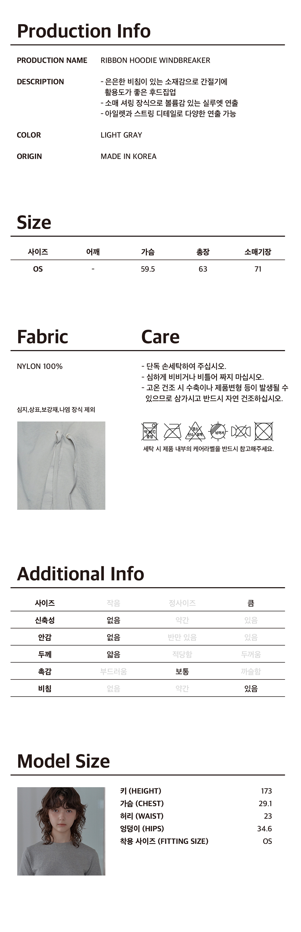 에프에이디 리본 후드 윈드브레이커 라이트 그레이