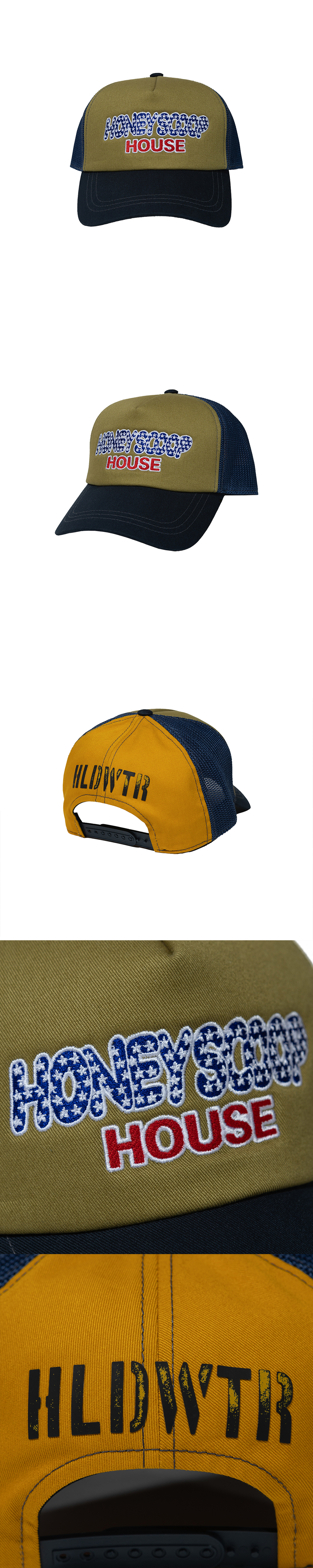 허니스쿱하우스 플래그 로고 트러커 캡 올리브