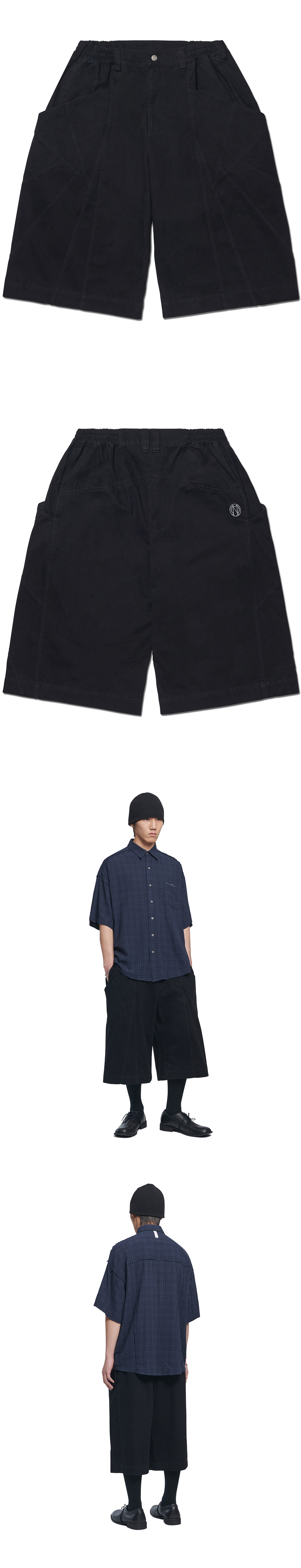 NOMANUAL Diagonal Pocket Bermuda Pants Washed Black