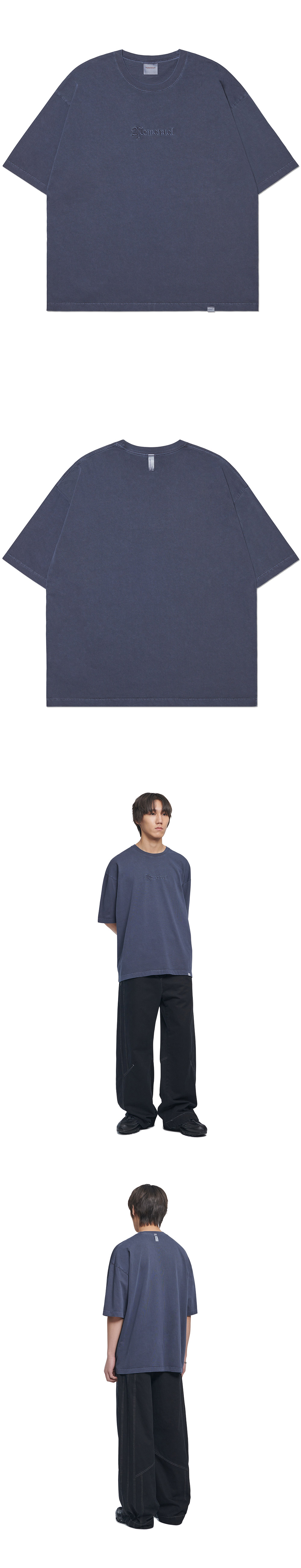노매뉴얼 엠브로이더 로고 티셔츠 워시드 네이비