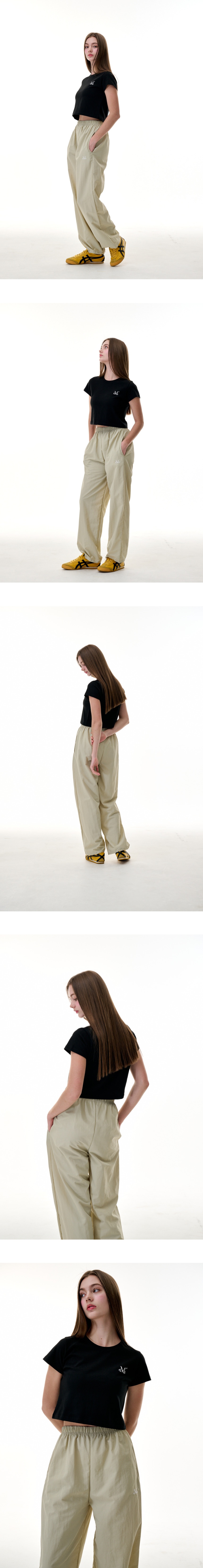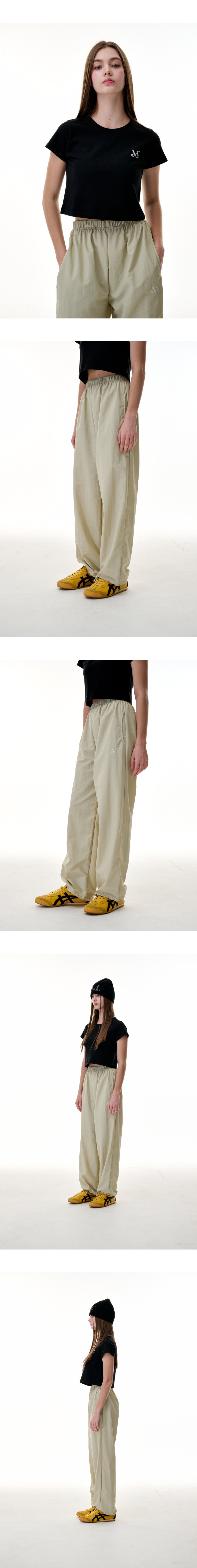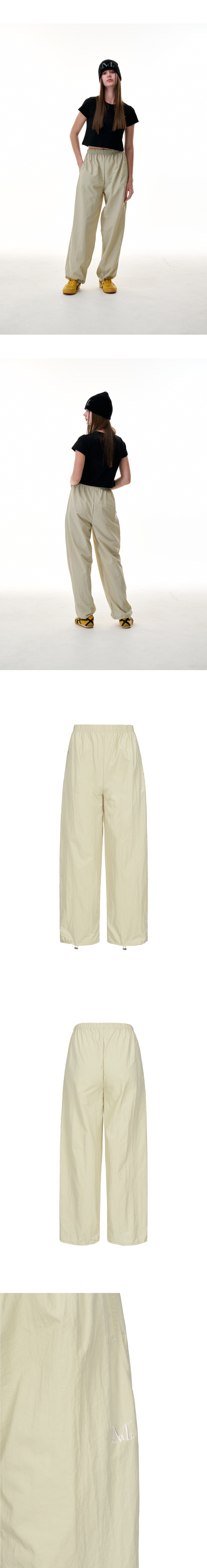 무센트 시그니처 자수 바스락 나일론 스트링 와이드 팬츠 라이트 카키