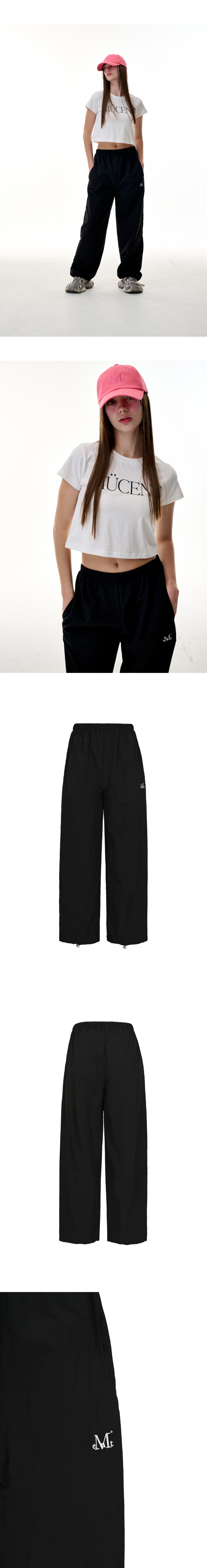 무센트 시그니처 자수 바스락 나일론 스트링 와이드 팬츠 블랙