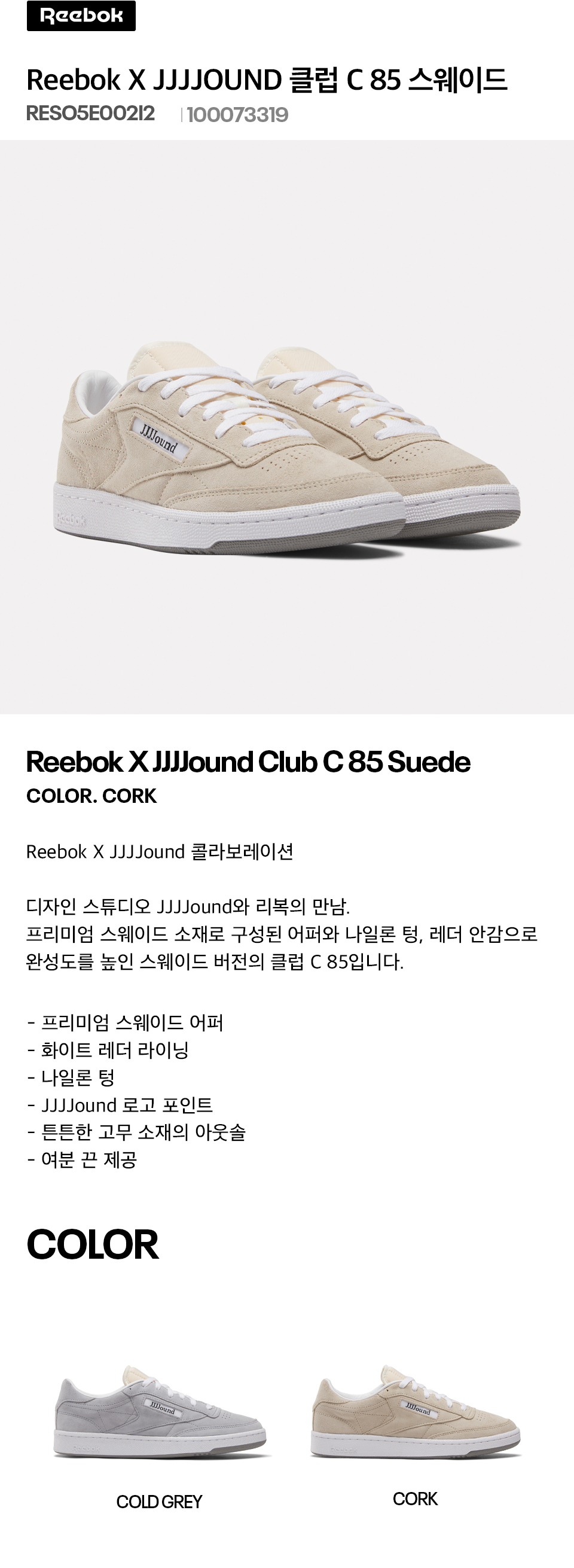 리복 x JJJJound 클럽 C 85 스웨이드 코르크