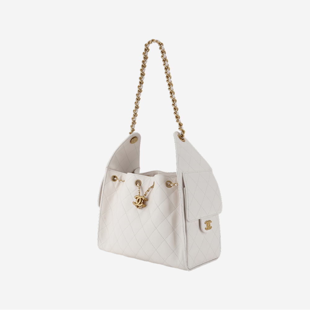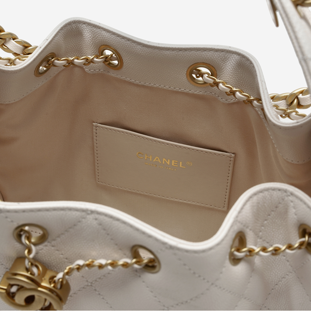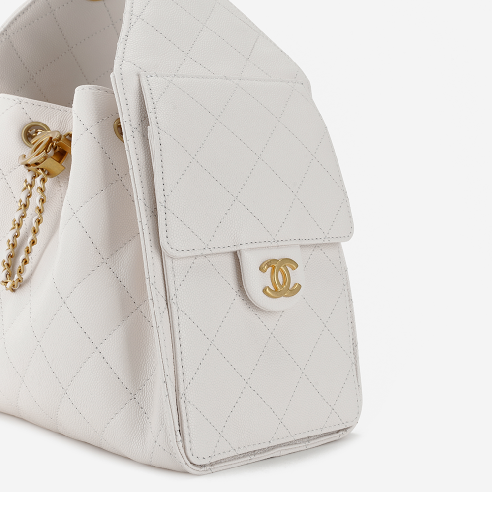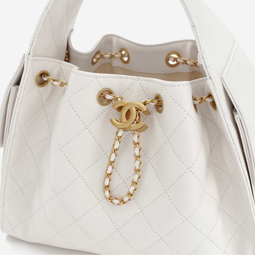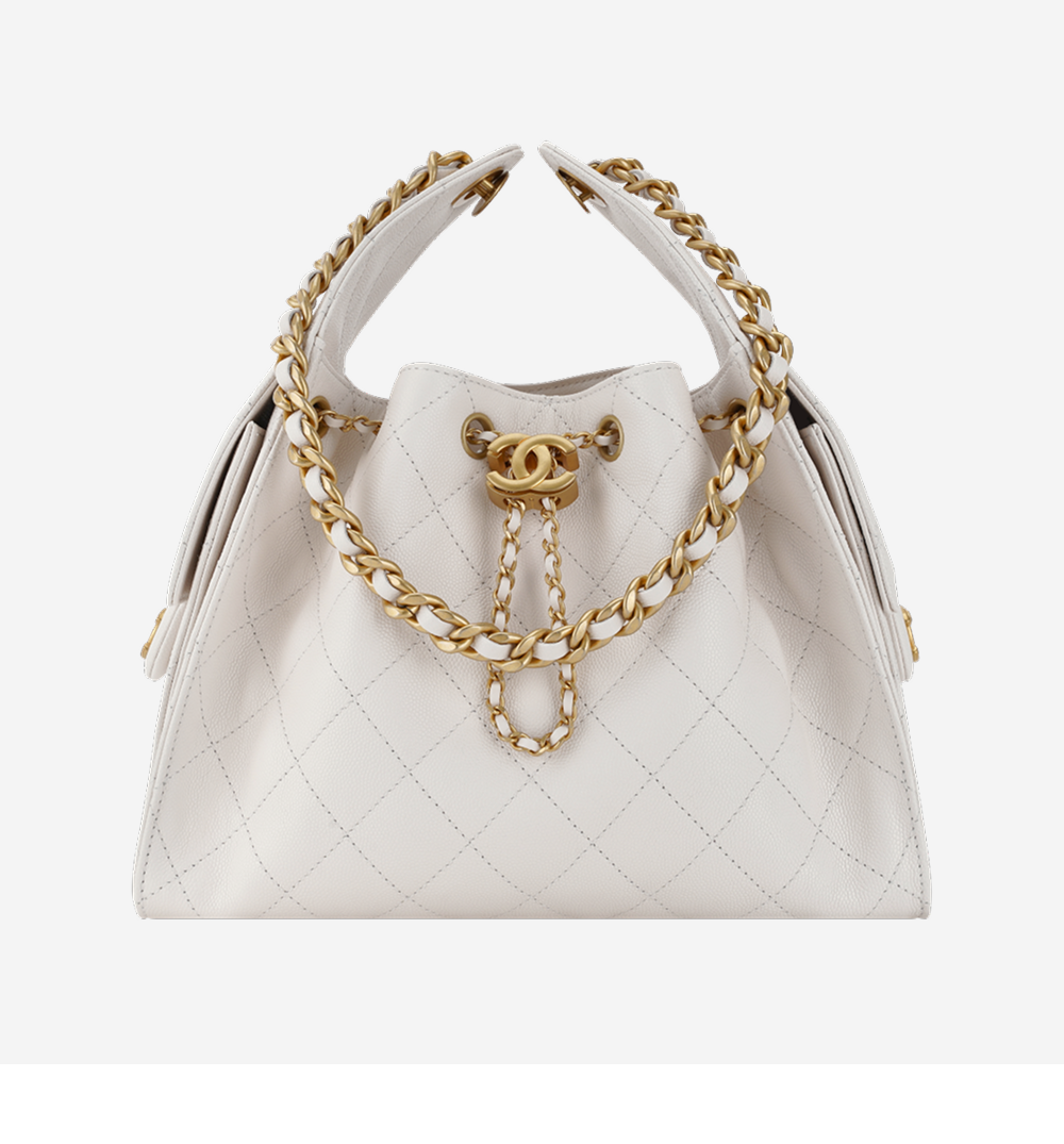 샤넬 25 스몰 핸드백 그레인드 카프스킨 & 골드 메탈 화이트