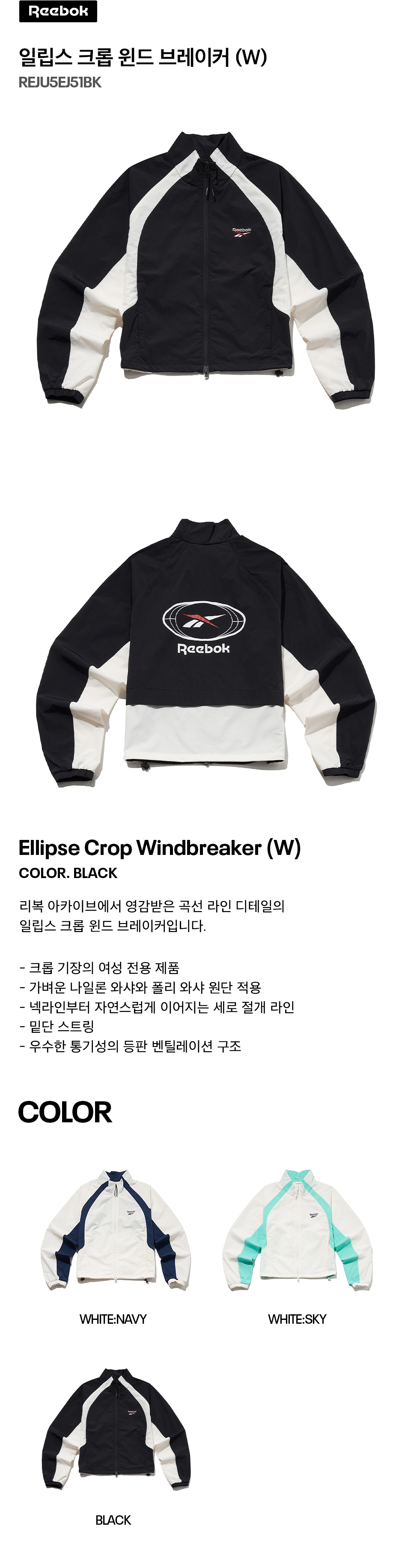 리복 일립스 크롭 윈드 브레이커 W 블랙