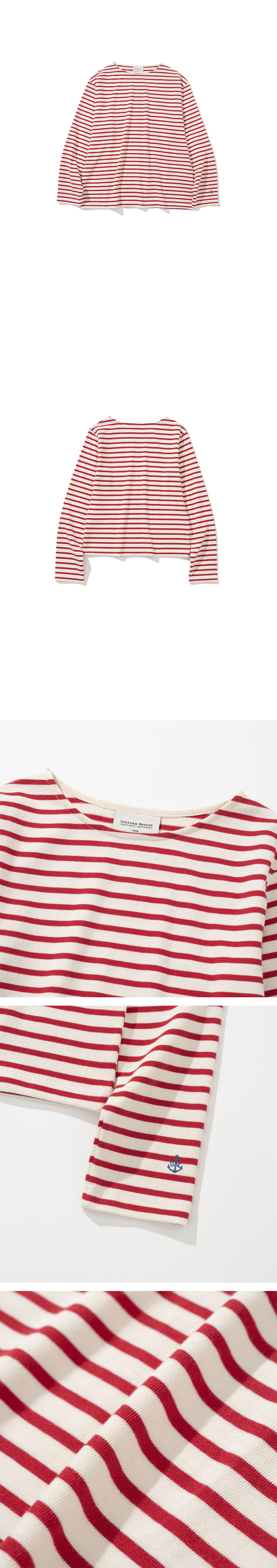 유니폼 브릿지 스트라이프 보트 넥 네이벌 롱슬리브 티 우먼 레드