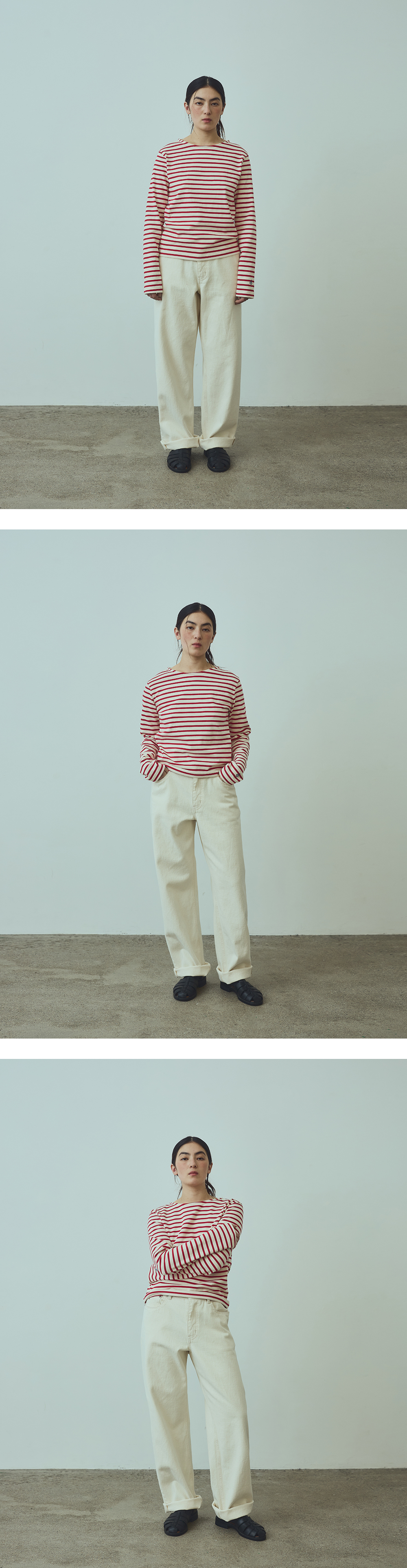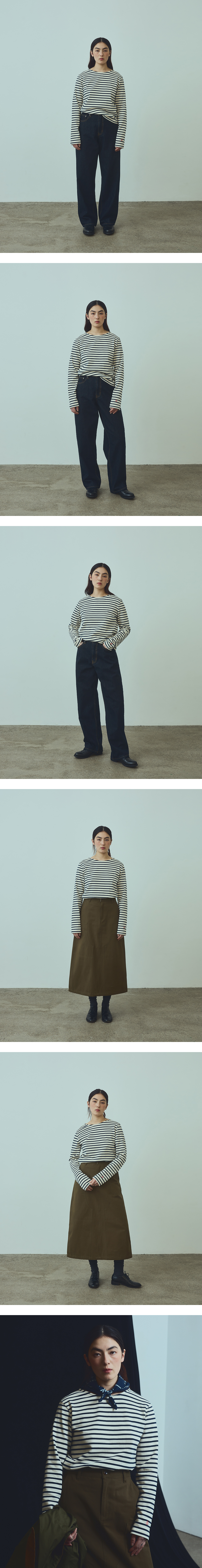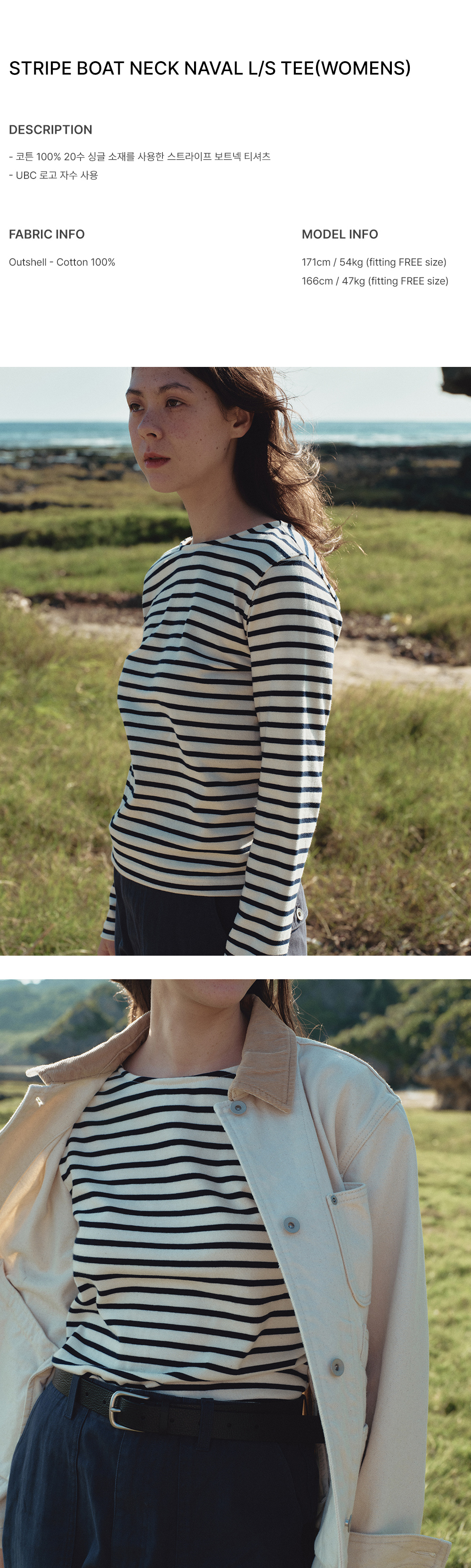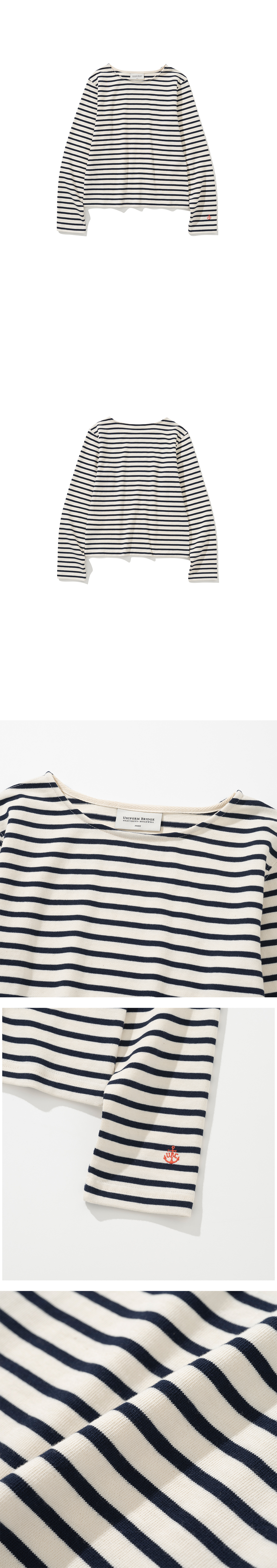 유니폼 브릿지 스트라이프 보트 넥 네이벌 롱슬리브 티 우먼 네이비