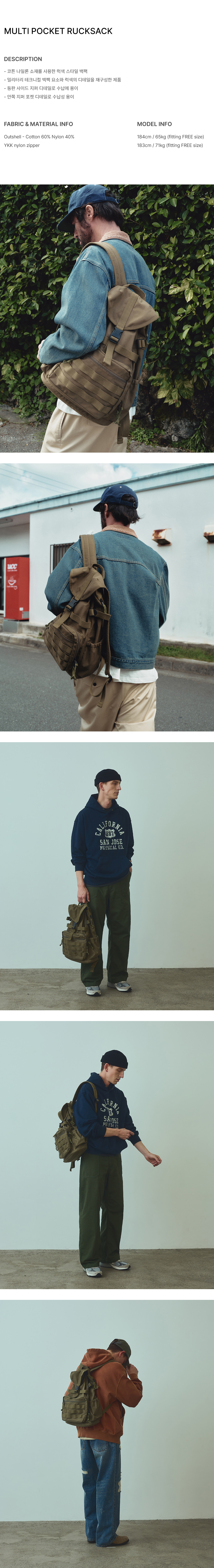 유니폼 브릿지 멀티 포켓 럭색 올리브