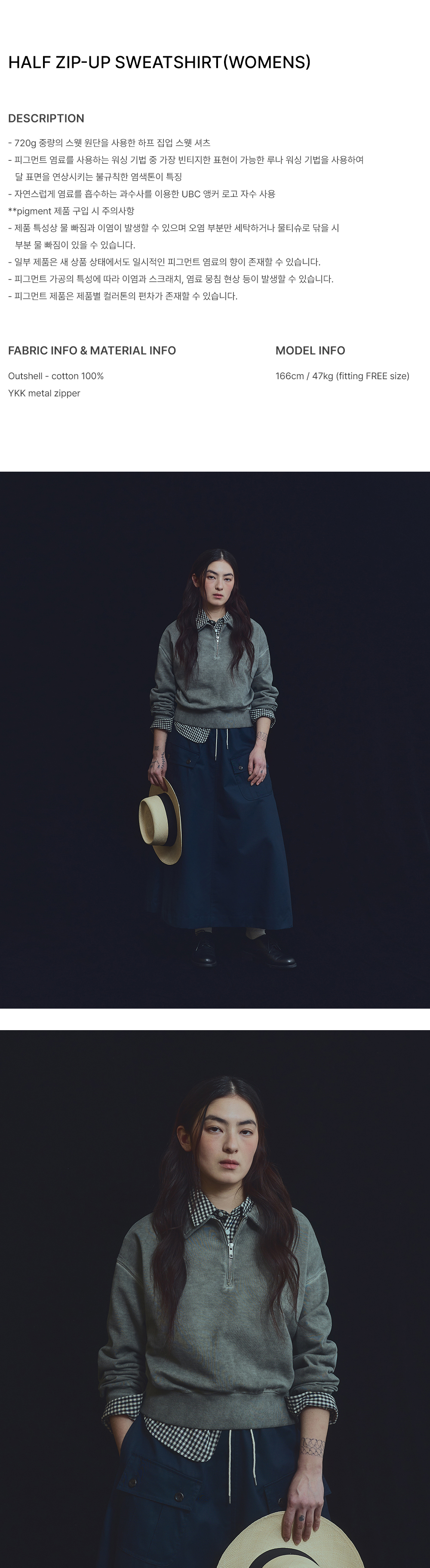 유니폼 브릿지 하프 집업 스웨트셔츠 우먼 올리브 그린