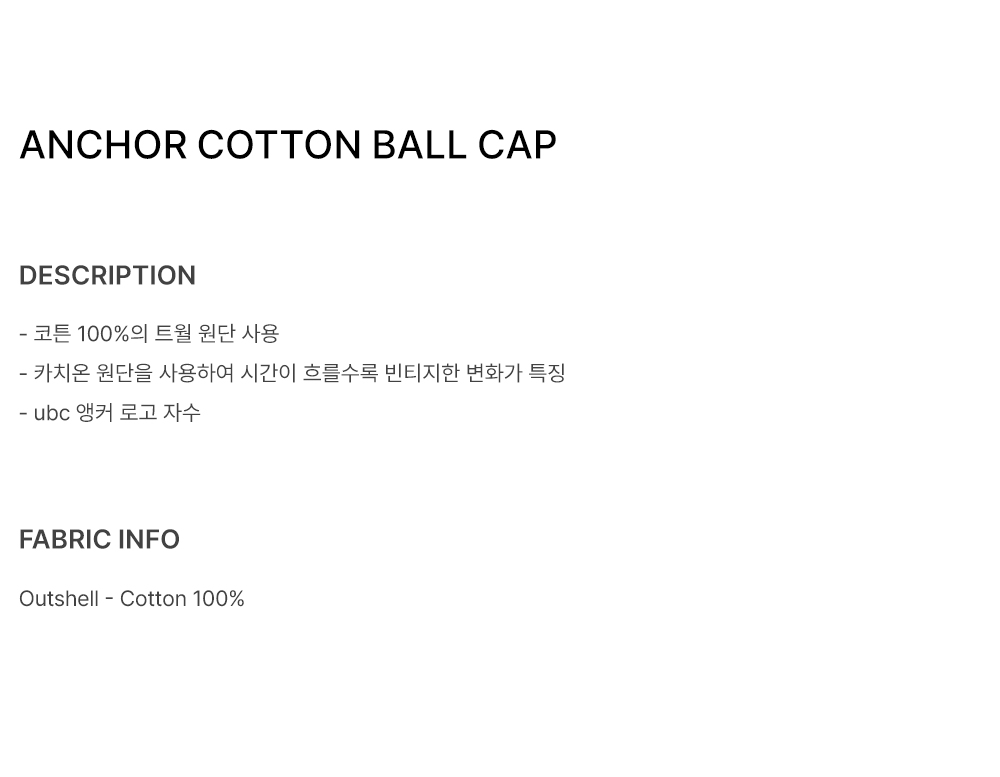 유니폼 브릿지 앵커 코튼 볼캡 베이지