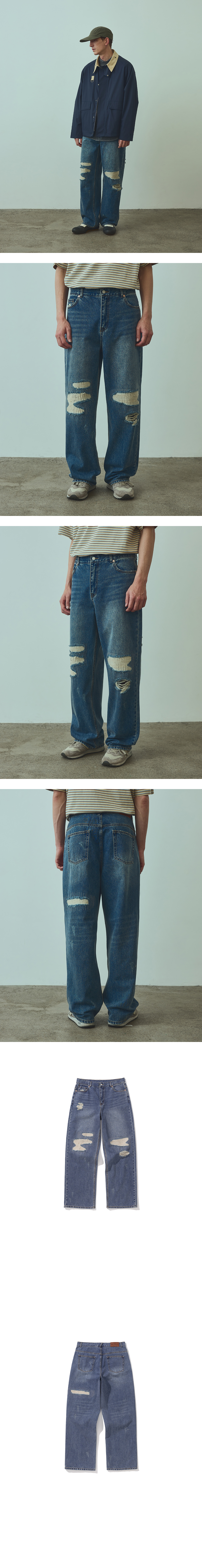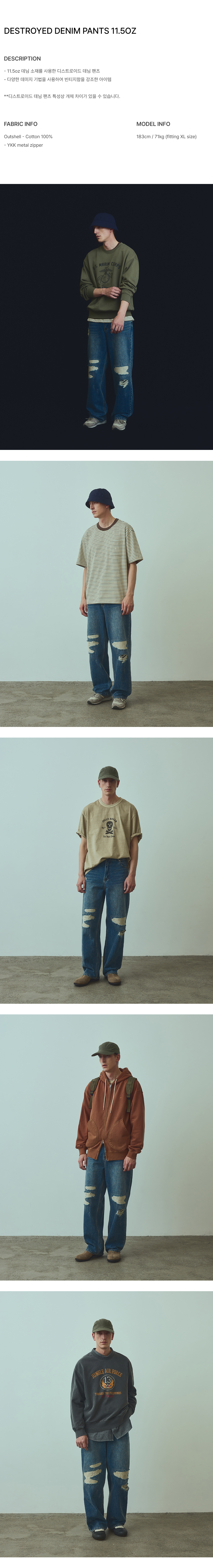 유니폼 브릿지 디스트로이드 데님 팬츠 11.5온즈 인디고 워시드