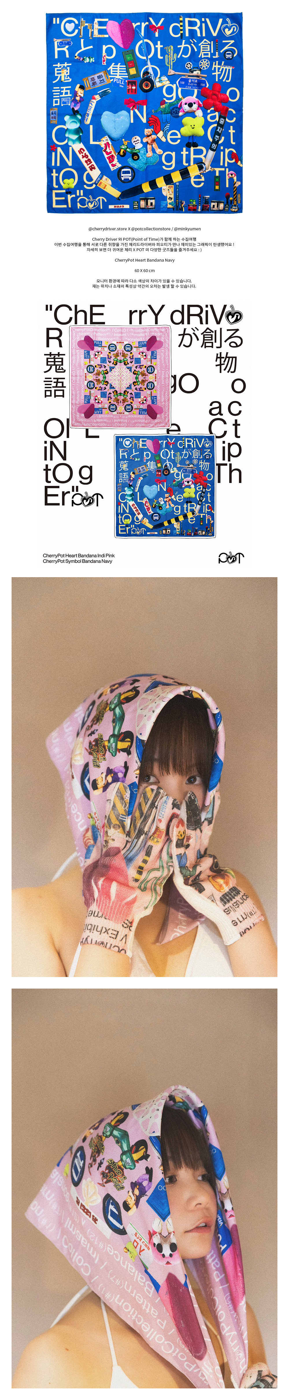 @cherrydriver.store X @potcollectionstore / @minkyumen Cherry Driver 와 POT(Point of Time)가 함께 하는 수집여행 이번 수집여행을 통해 서로 다른 취향을 가진 체리드라이버와 피오티가 만나 재미있는 그래픽이 탄생했어요 ! 자세히 보면 더 귀여운 체리 X POT 의 다양한 굿즈들을 즐겨주세요 : ) CherryPot Symbol Bandana Navy 60 X 60 cm 모니터 환경에 따라 다소 색상의 차이가 있을 수 있습니다. 재는 위치나 소재의 특성상 약간의 오차는 발생 할 수 있습니다.