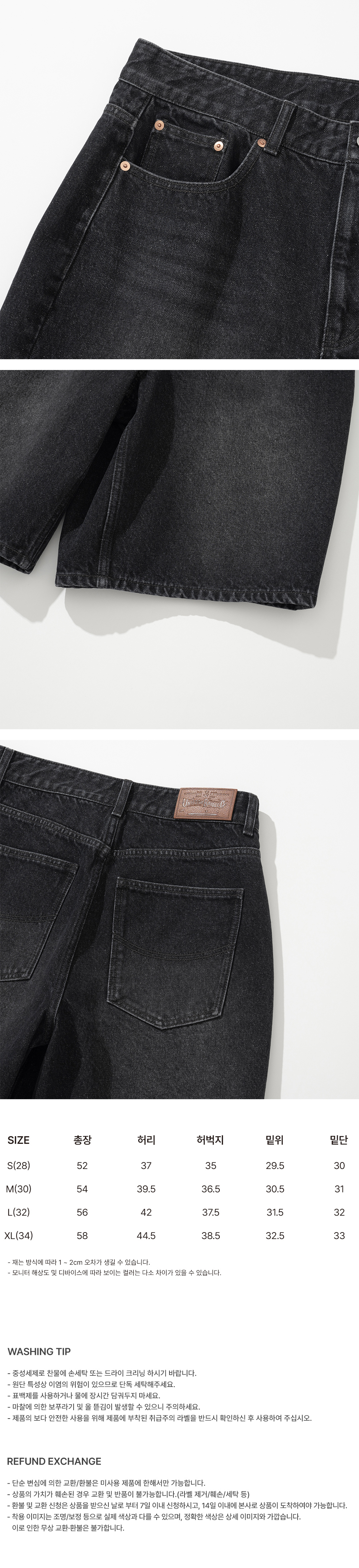 유니폼 브릿지 5포켓 데님 숏츠 12온즈 블랙 워시드