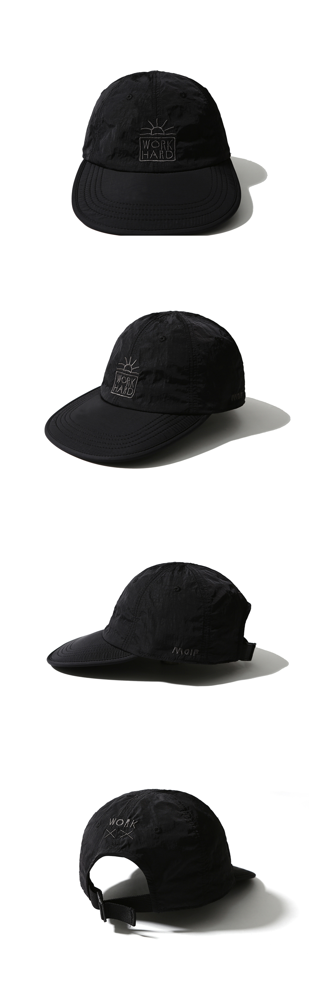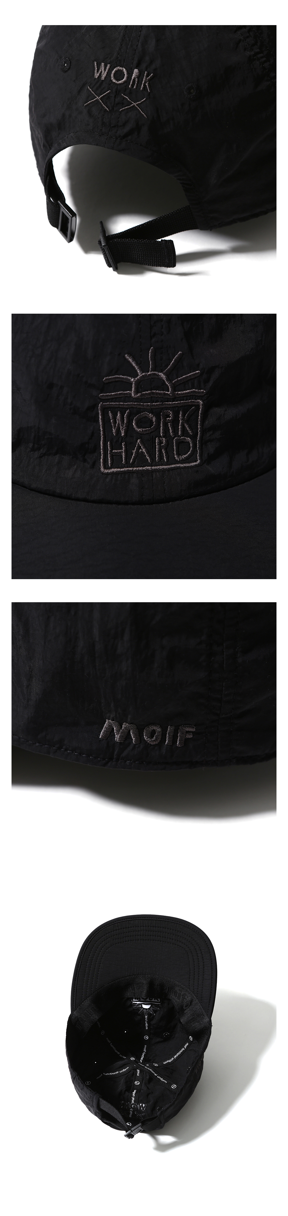 이나피스퀘어의 아트웍이 담긴 모자 · 6개의 패널로 구성된 모자. · 나일론 원단 사용. · 가벼운 물방울과 바람을 막아주는 방풍 및 발수 가공 처리된 원단. · 흡습/속건 기능을 갖춘 소재를 사용한 내부 땀받이. · 뒤로 젖혀진 낮은 높이의 패널과 길이가 긴 챙으로 설계. · 챙은 부드러운 압축 스펀지를 넣어 편안한 착용감. · 손쉽게 사이즈를 조절할 수 있는 후면부 버클 클로저. · 이나피스퀘어 아트웍 그래픽 자수.