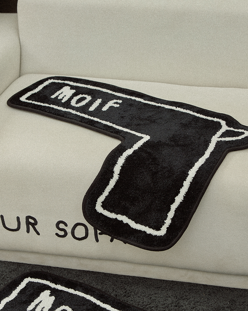 이나피스퀘어의 아트웍이 담긴 발 매트 · 권총 모양을 한 독특한 형태의 발 매트. · 극세사 원사를 한 올씩 심는 자카드 방식으로 제작. · 길이가 긴 원사로 푹신하고 수분 흡수력이 뛰어남. · 바닥면은 미끄럼 방지를 위한 실리콘 처리. · 인테리어 포인트가 될 수 있는 아이템. · 이나피스퀘어 아트웍 그래픽 직조.