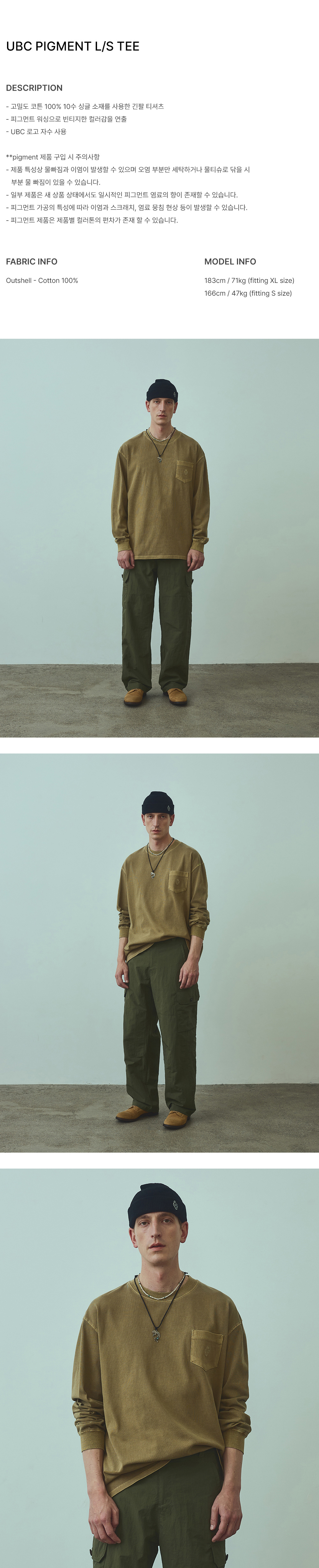 유니폼 브릿지 유비씨 피그먼트 롱슬리브 티 카키