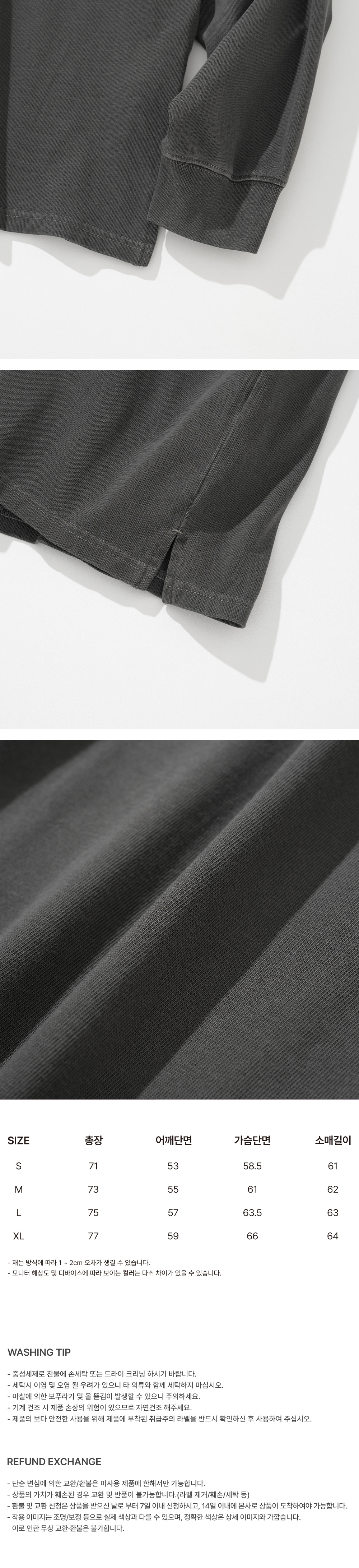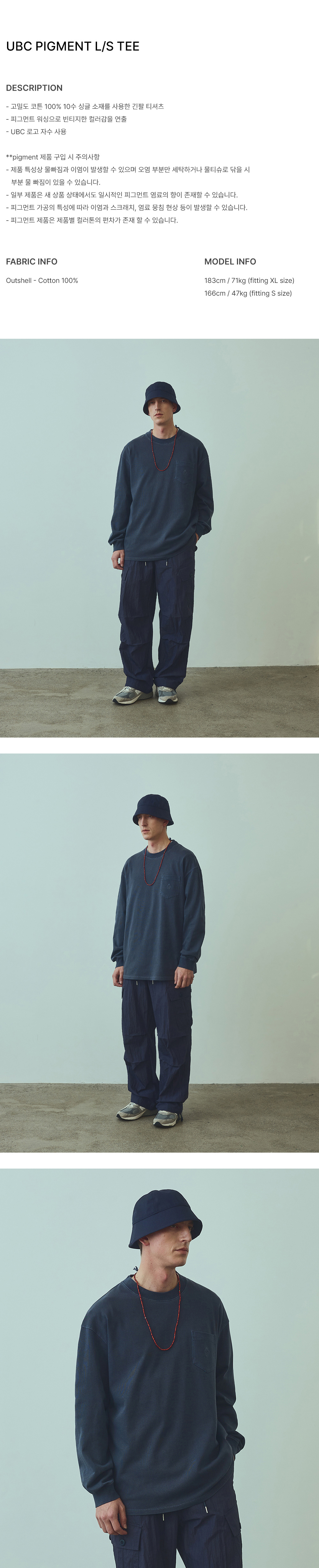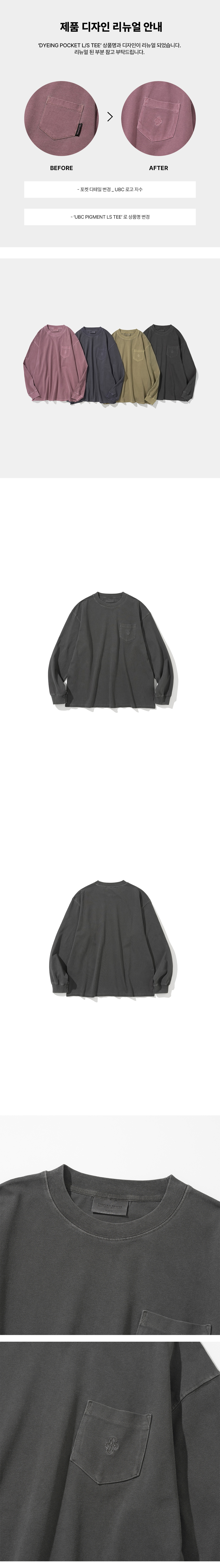 유니폼 브릿지 유비씨 피그먼트 롱슬리브 티 차콜