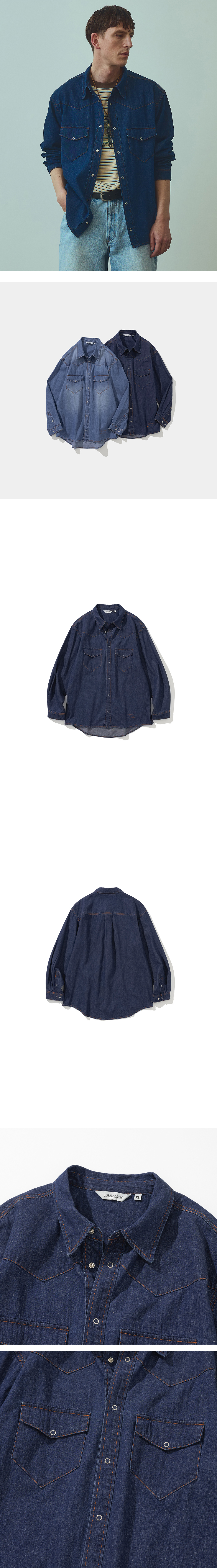 유니폼 브릿지 웨스턴 데님 셔츠 6온즈 인디고 원 워시드