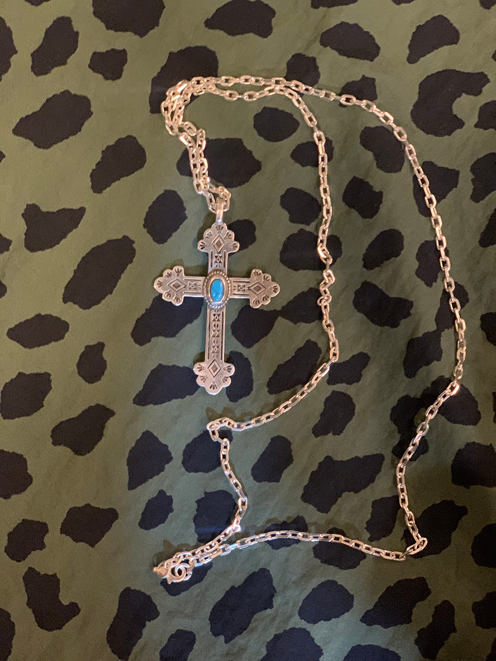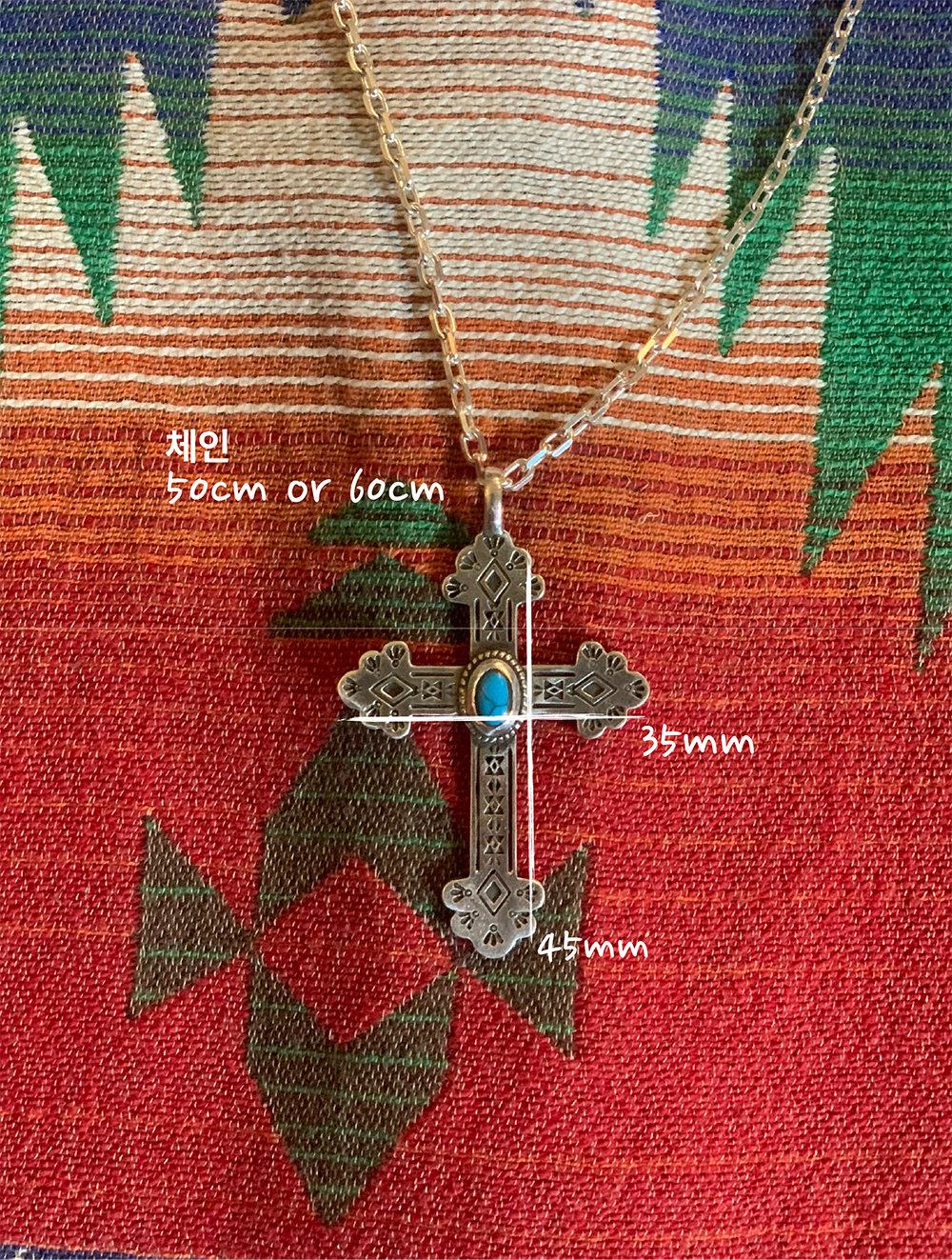 더가이즈X렌도 925 실버 십자가 터키석 펜던트 실버 체인 목걸이 50cm