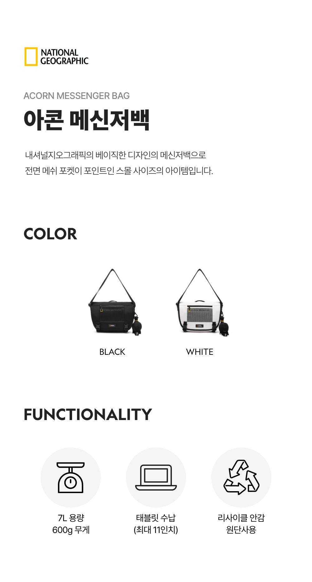 내셔널지오그래픽 아콘메신저백 블랙