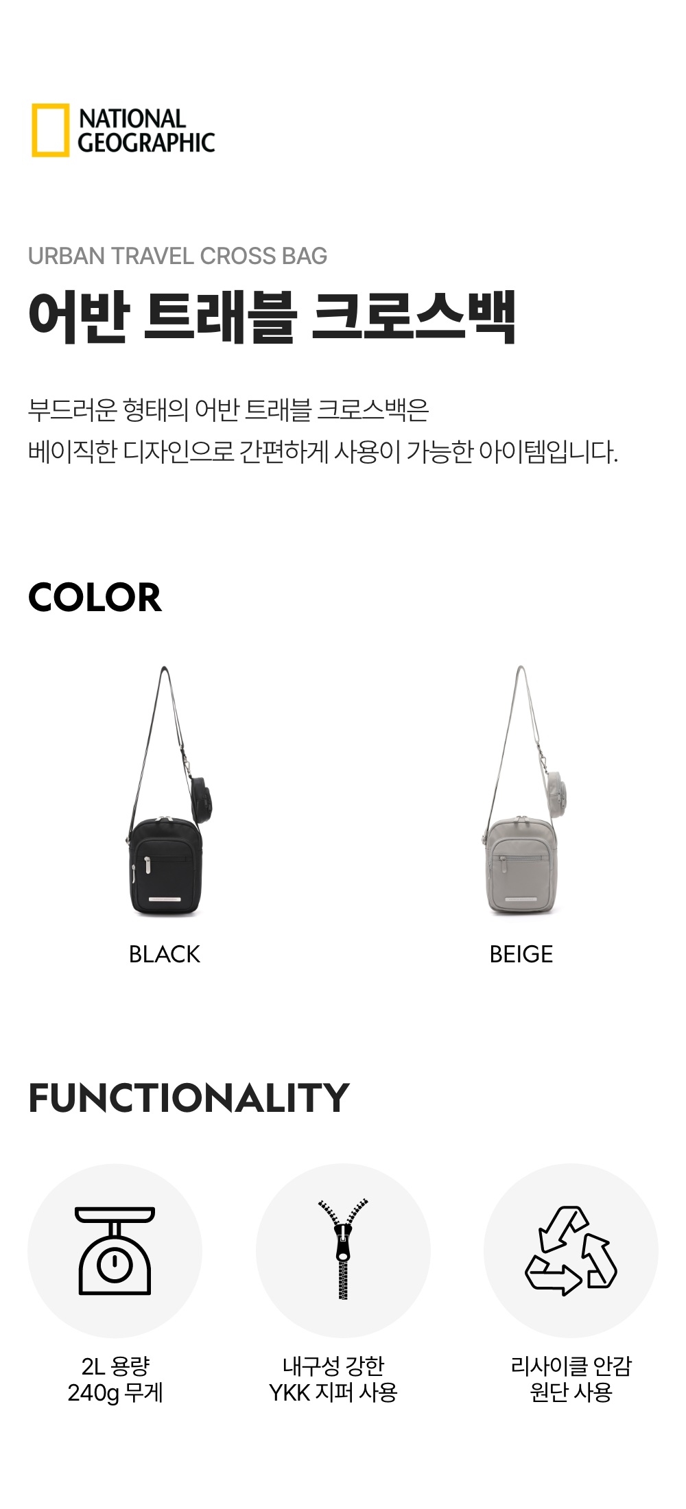 내셔널지오그래픽 어반 트래블 크로스백 베이지