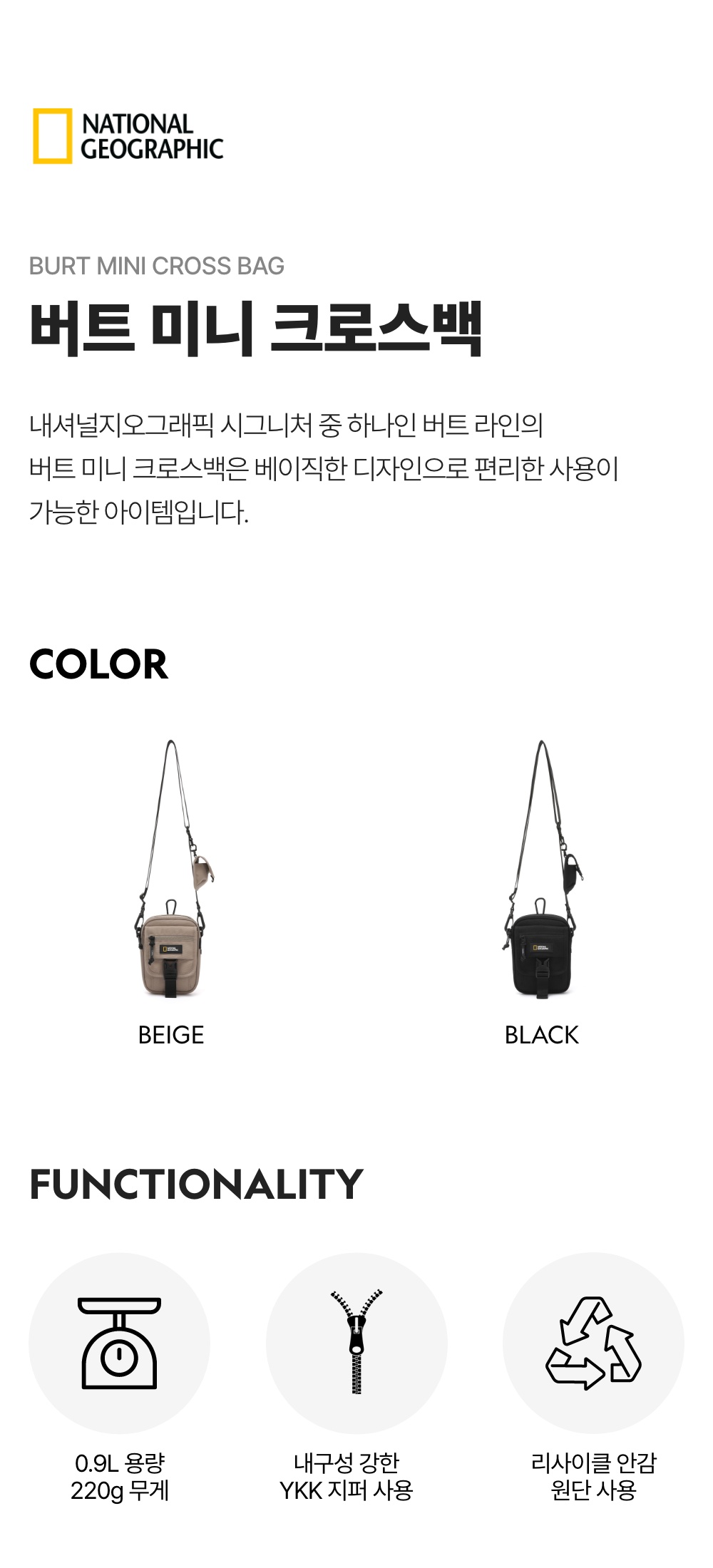 내셔널지오그래픽 버트미니크로스백 블랙