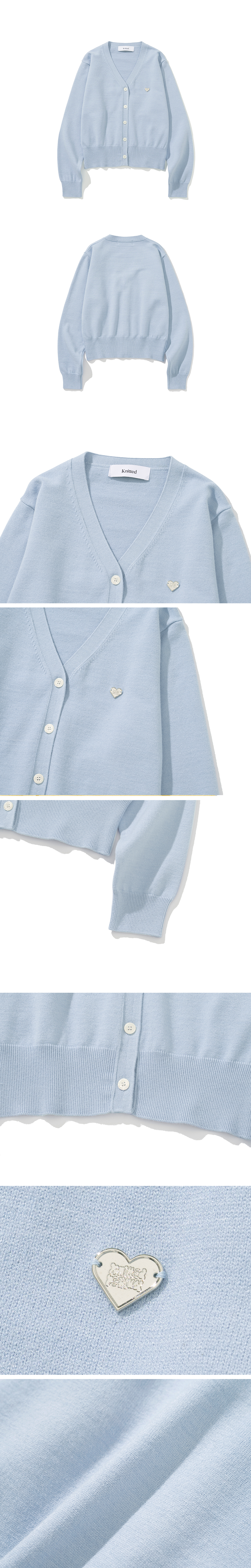 니티드 베이직 에센셜 워셔블 브이넥 가디건 우먼 스카이 블루