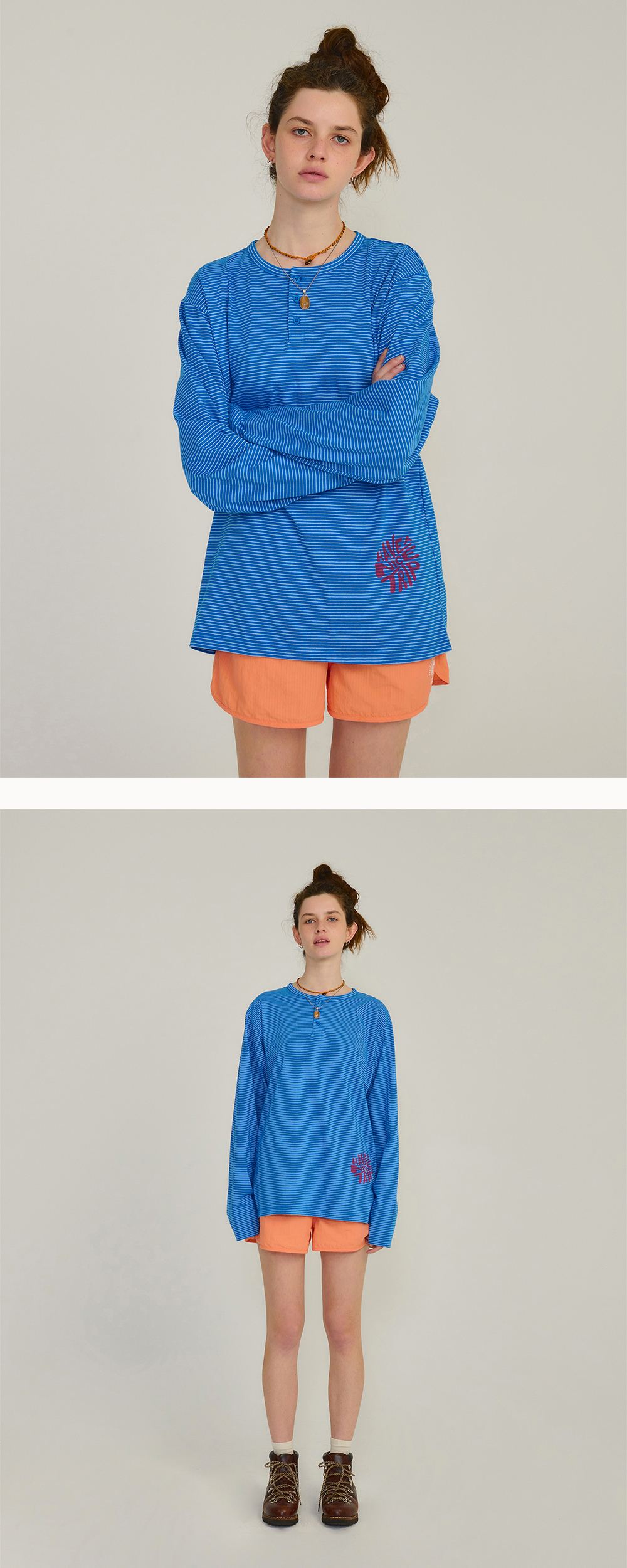 전면 HNT Swirl Logo 그래픽이 들어간 스트라이프 티셔츠입니다. - 전면 HNT Swirl Logo 그래픽 나염 처리 - 후면 Hello Sunrise 심볼 자수 처리 - 여유로운 핏으로 편안한 착용감 * 측정 기준에 따라 1-2cm의 차이가 있을 수 있습니다. * Cotton 100% Made in Korea