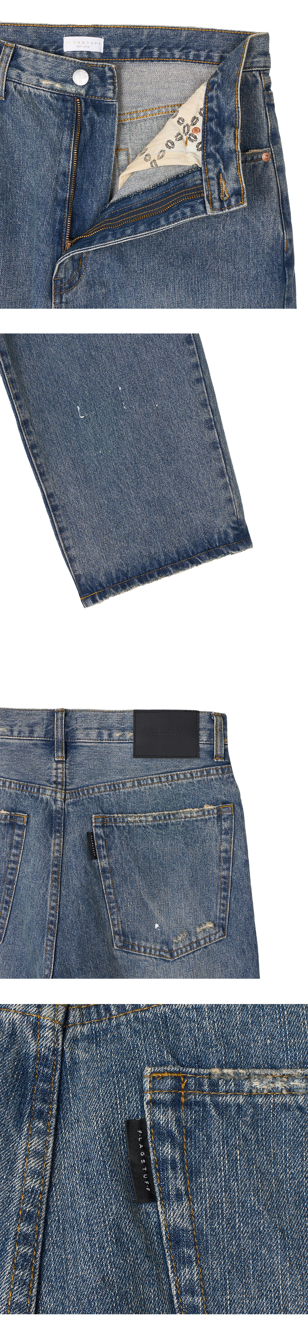 빈티지 무드가 매력적인 플래그스터프의 페이드 배기 데님 팬츠 인디고입니다. - 와이드 스트레이트 5포켓 데님 팬츠 - 50년대 빈티지 데님 샘플링 - 잔세로 슬라브가 들어간 13oz 데님 원단 채택 - 탈색과 오버다이징을 하여 오래된 감촉 재현 - 핸드메이드 페인트 가공 * 구매 전 주의 사항: 인디고 염색은 몇 차례의 염색 과정을 거치므로, 색이 짙을수록 물이 빠질 우려가 있으며, 마찰 시 파란 물이 쉽게 배어 나옵니다.